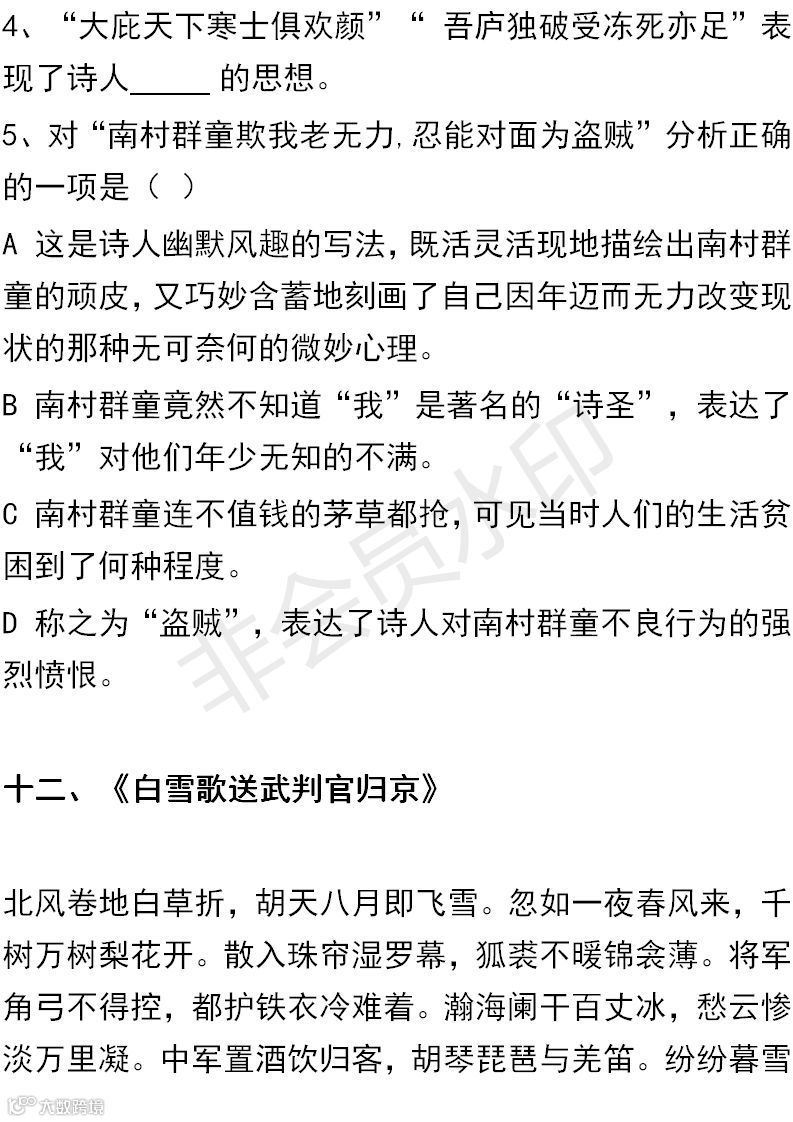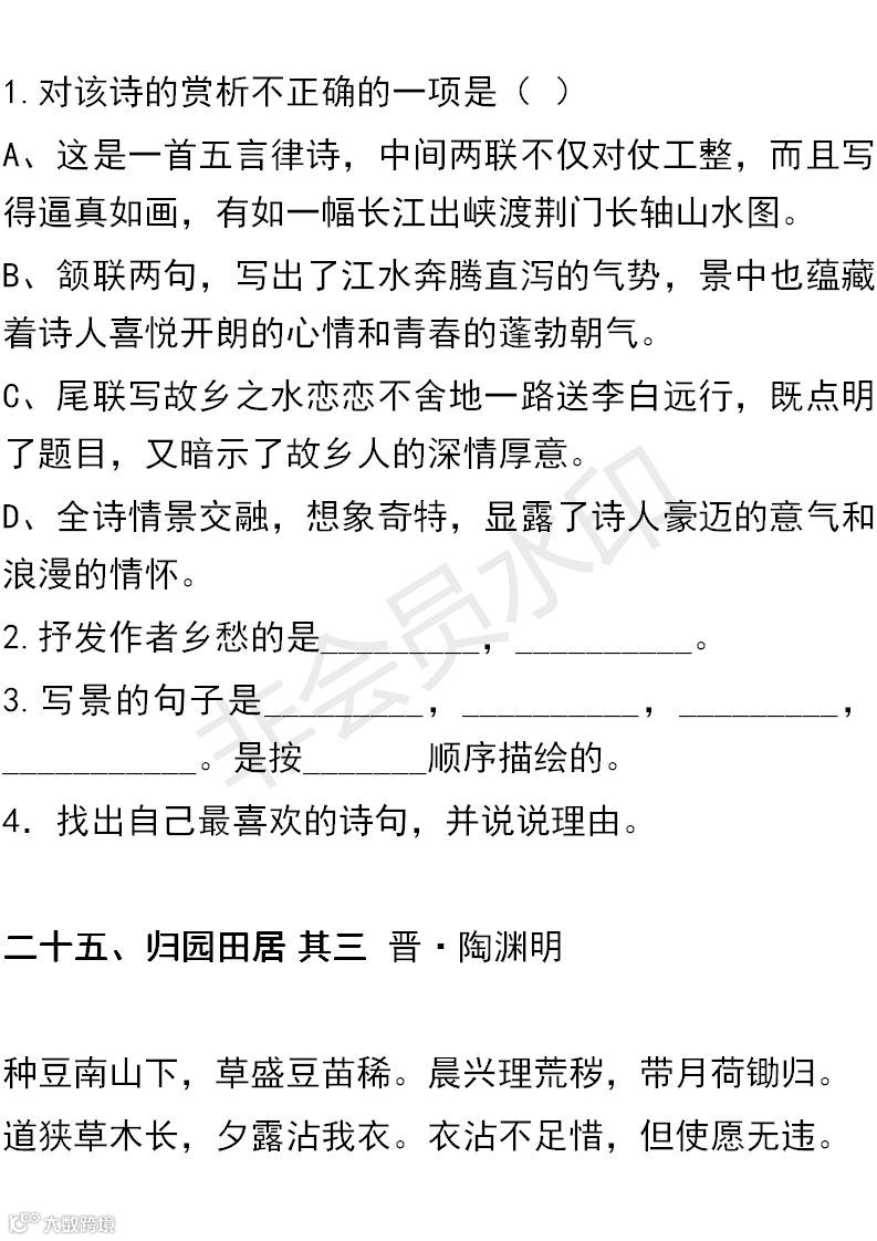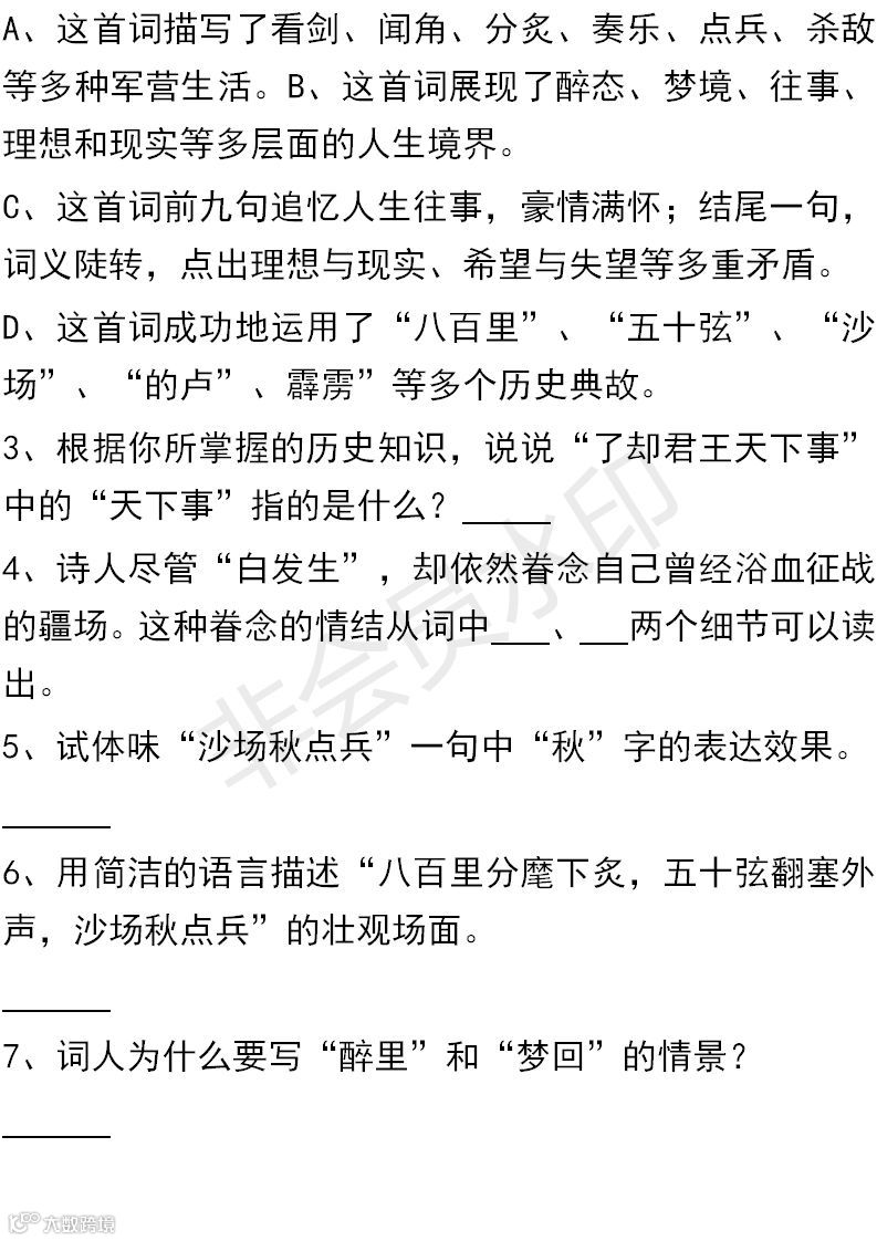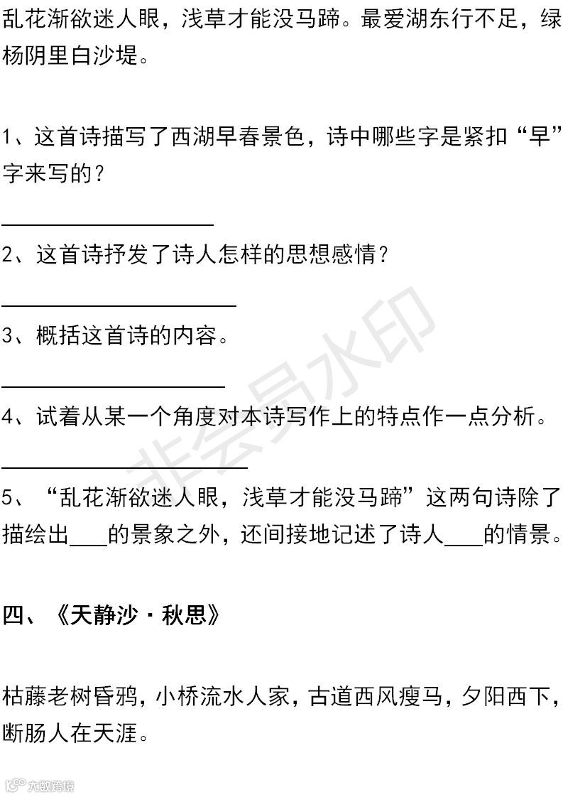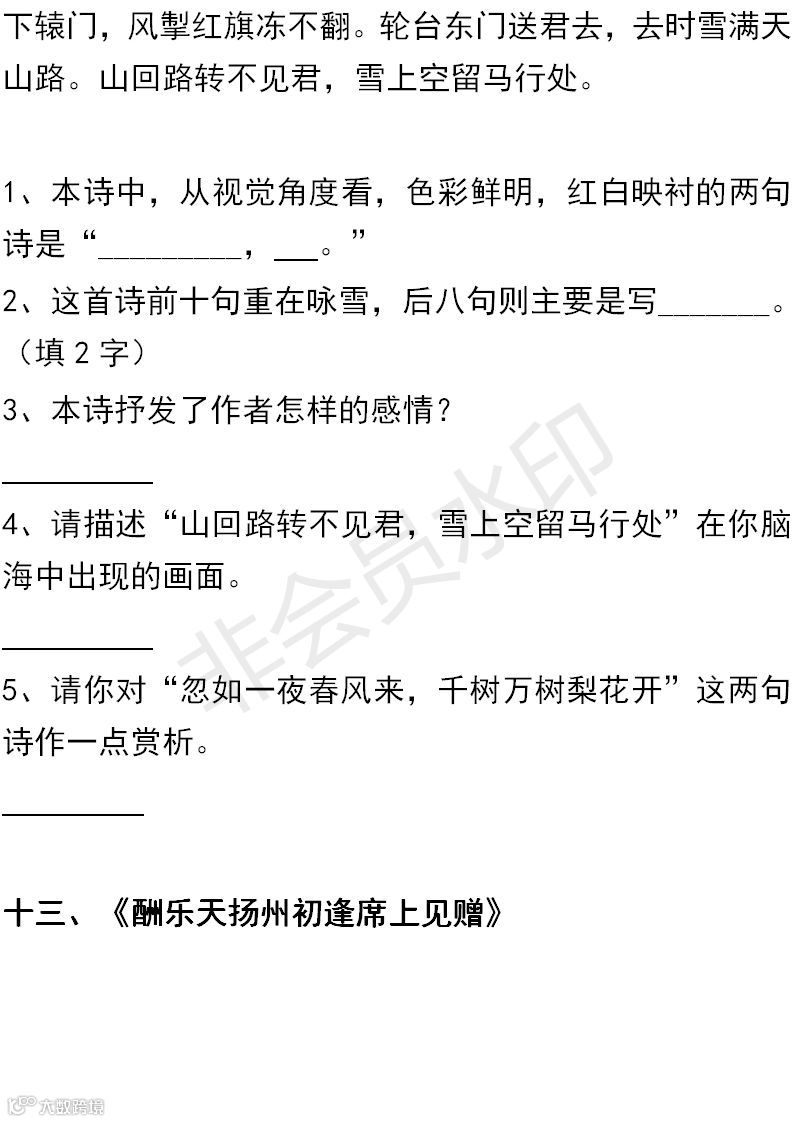 中考复习:七至九年级语文课内古诗词赏析题汇总练习