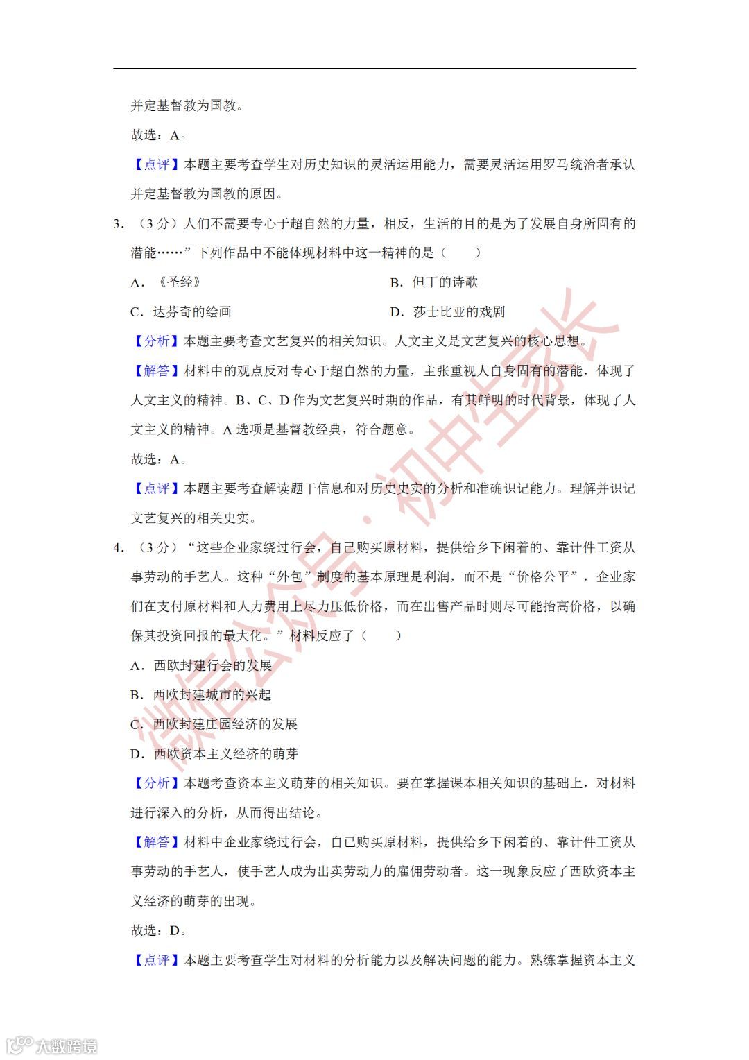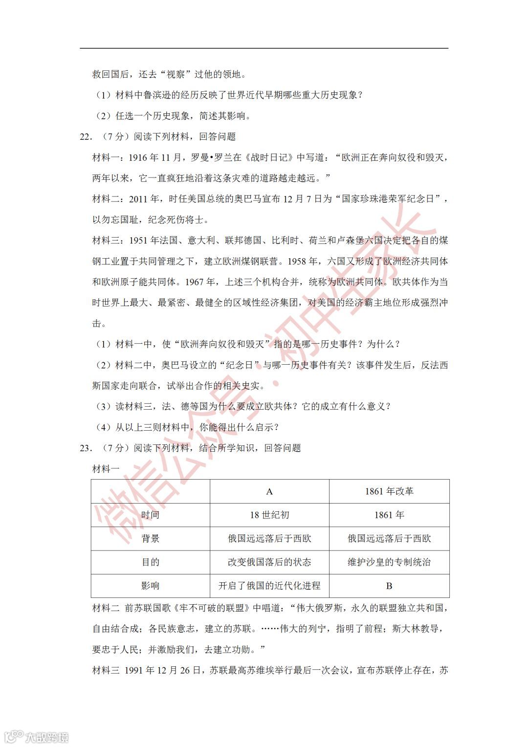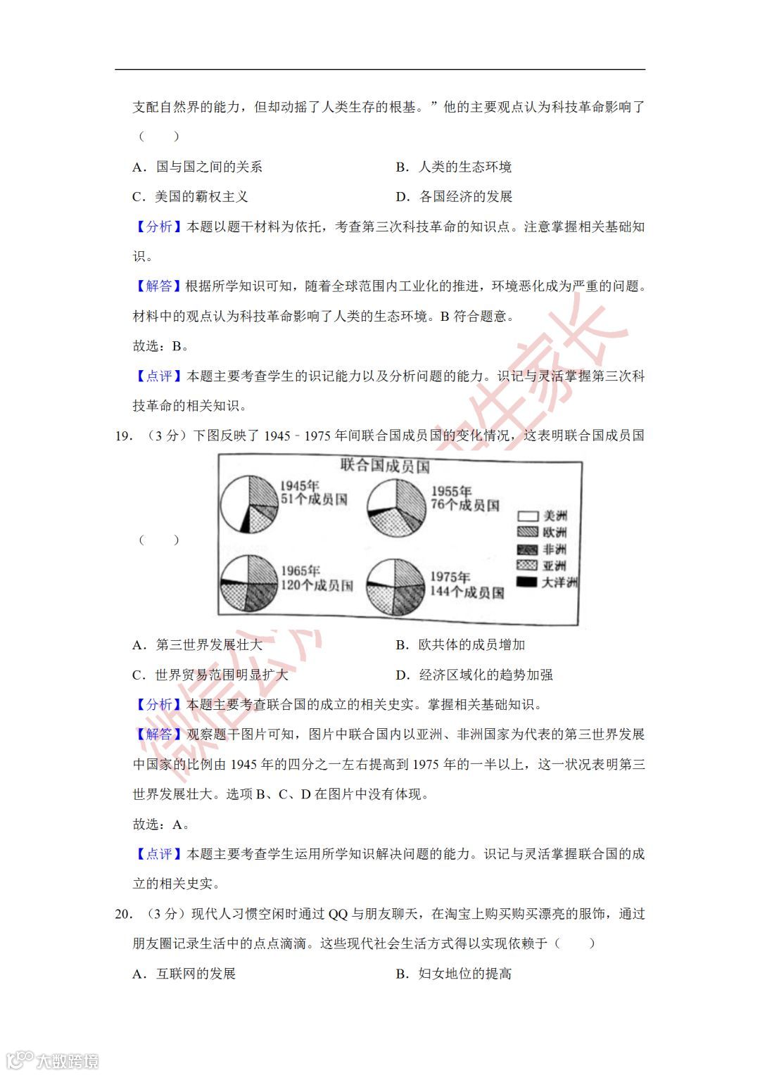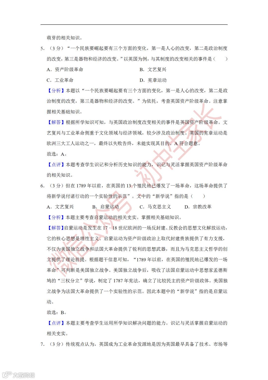 2019年中考历史一模试卷,附答案解析
