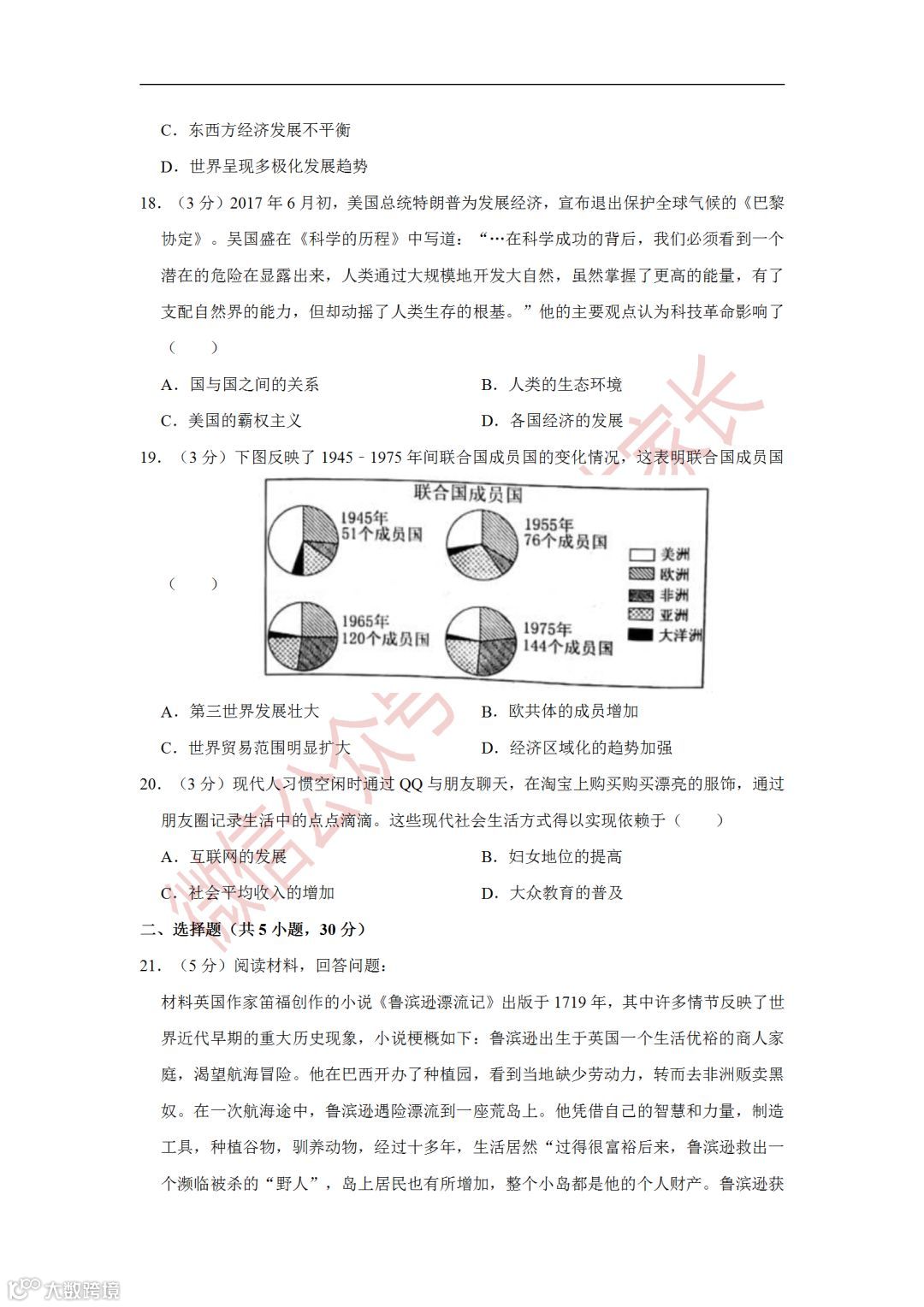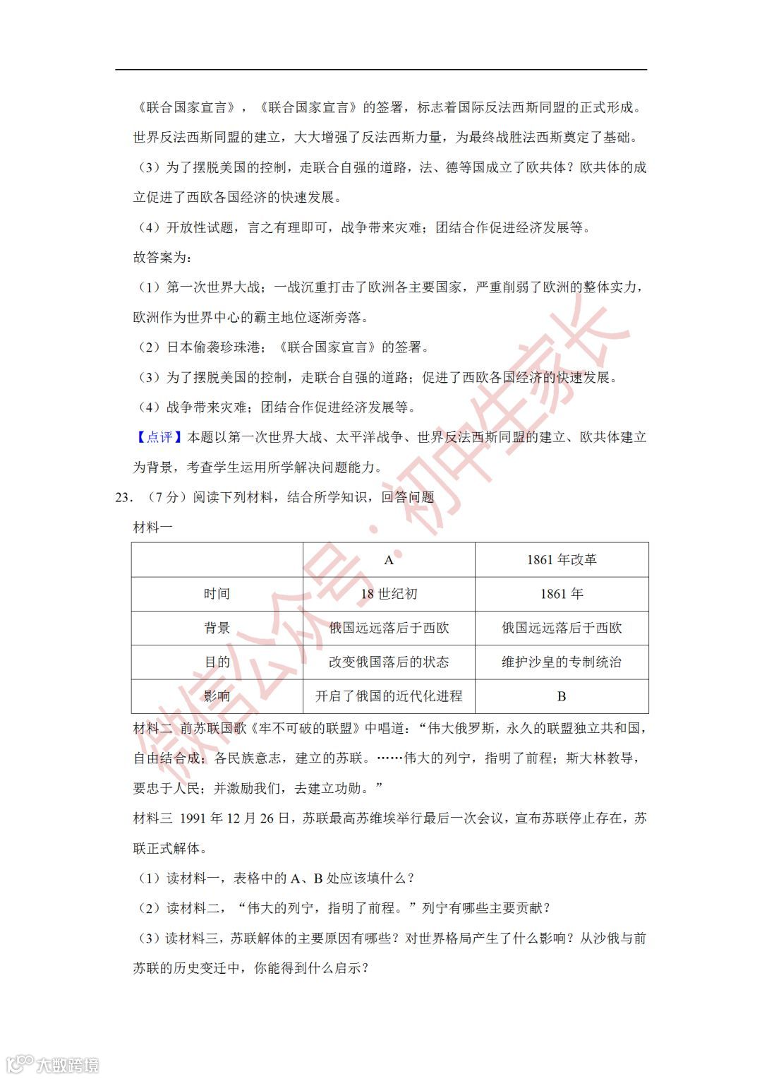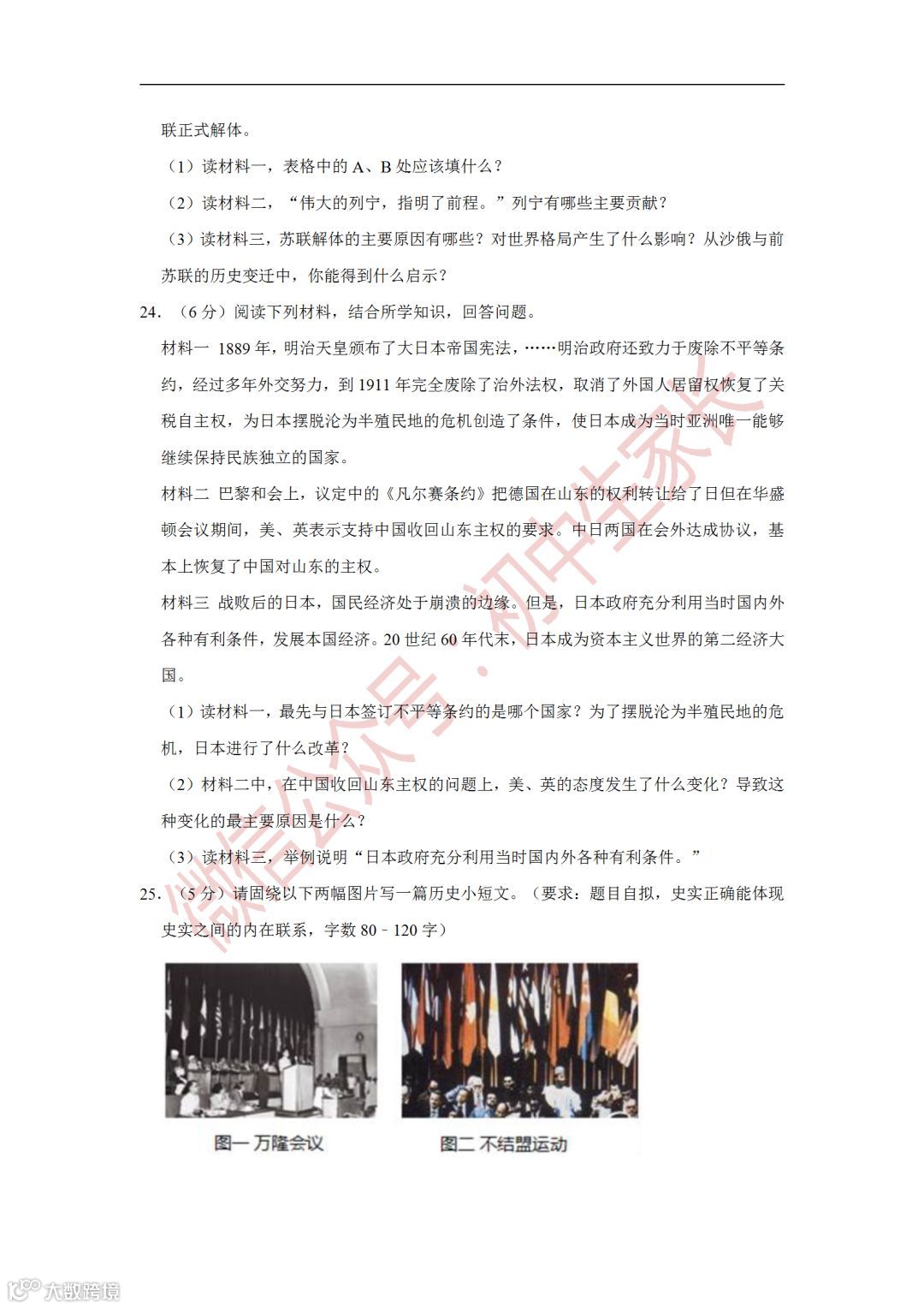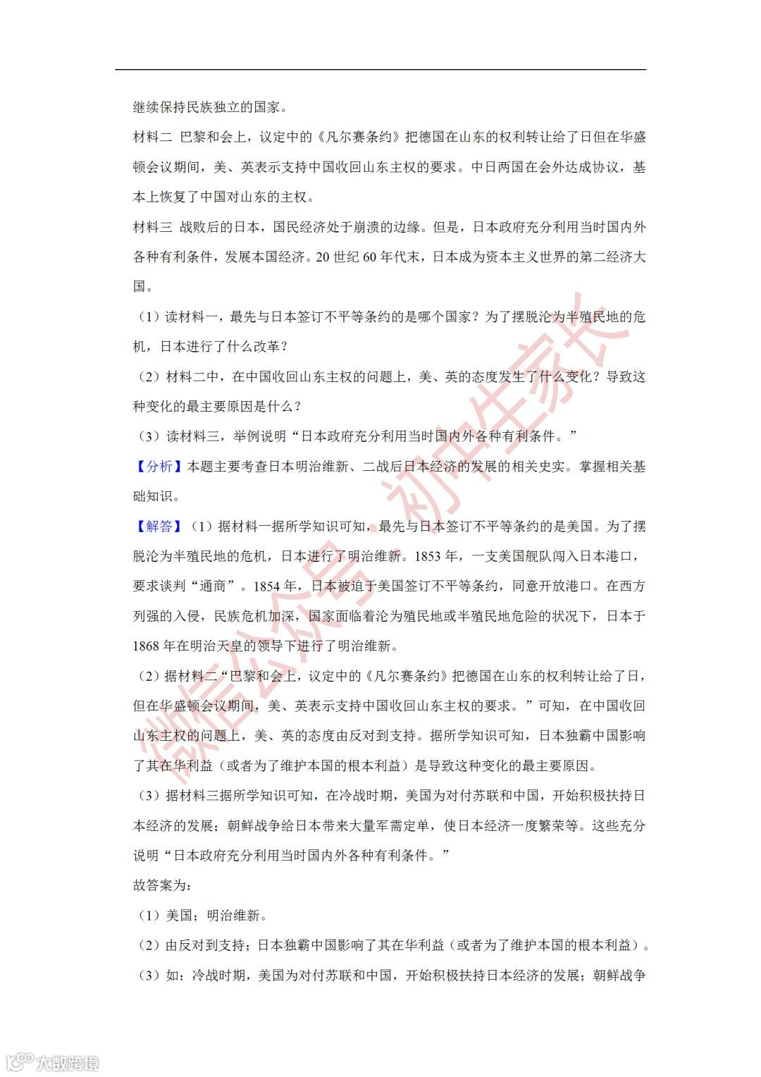 2019年中考历史一模试卷,附答案解析