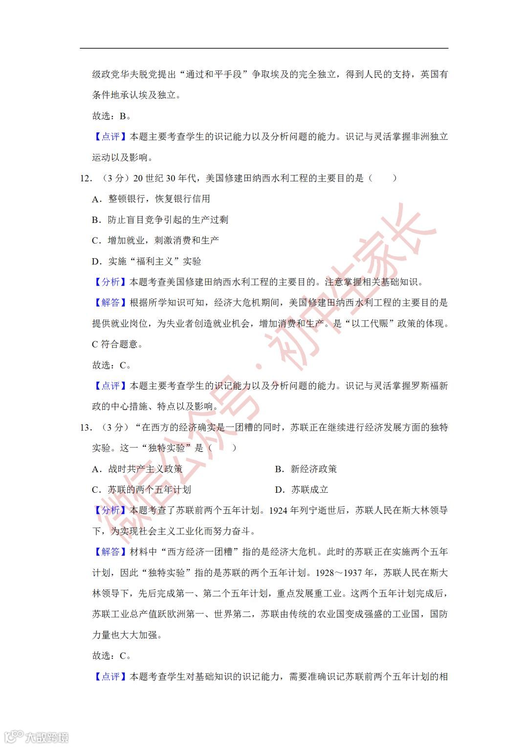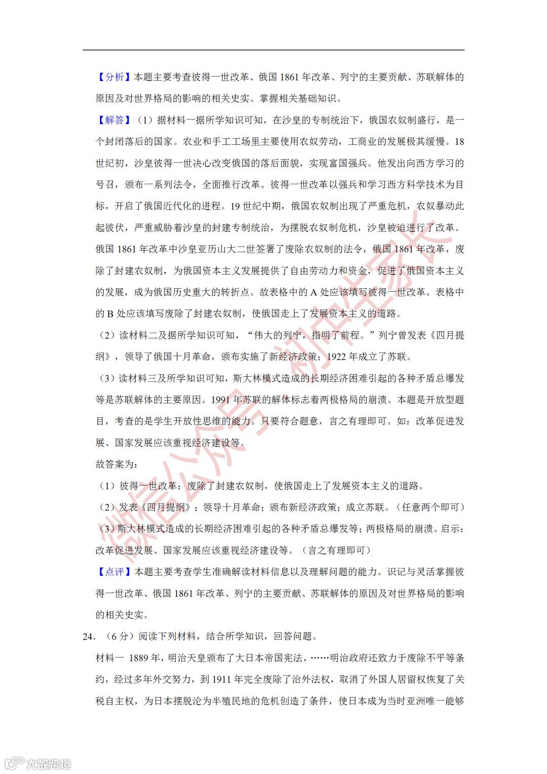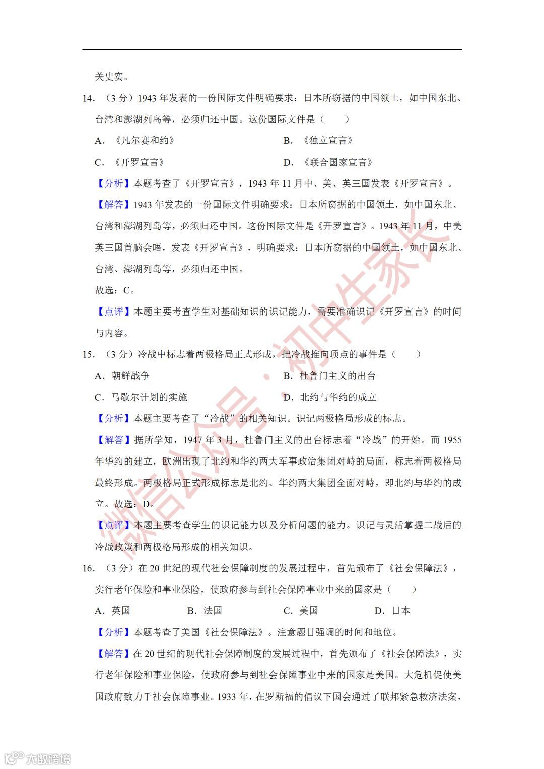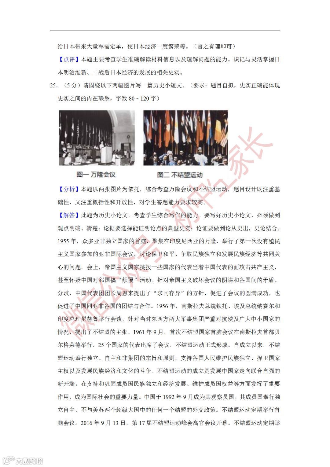 2019年中考历史一模试卷,附答案解析