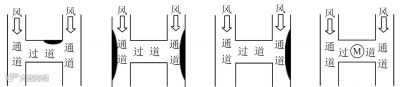 12.学习了“流体压强与流速的关系”后,为了解决“H”形地下通道中过道的通风问题,同学们设计了如下几种方案。如图所示,黑色部分为墙面凸出部分,“M”为安装在过道顶的换气扇,其中既有效又节能的是 ( )