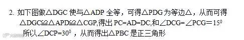 2、已知:如图,P是正方形ABCD内点,∠PAD=∠PDA=15度