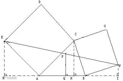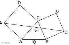 4、如图,分别以△ABC的AC和BC为一边,在△ABC的外侧作正方形ACDE和正方形CBFG,点P是EF的中点.