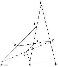 4.如下图连接AC并取其中点Q,连接QN和QM,所以可得∠QMF=∠F,∠QNM=∠DEN和∠QMN=∠QNM,从而得出∠DEN=∠F。