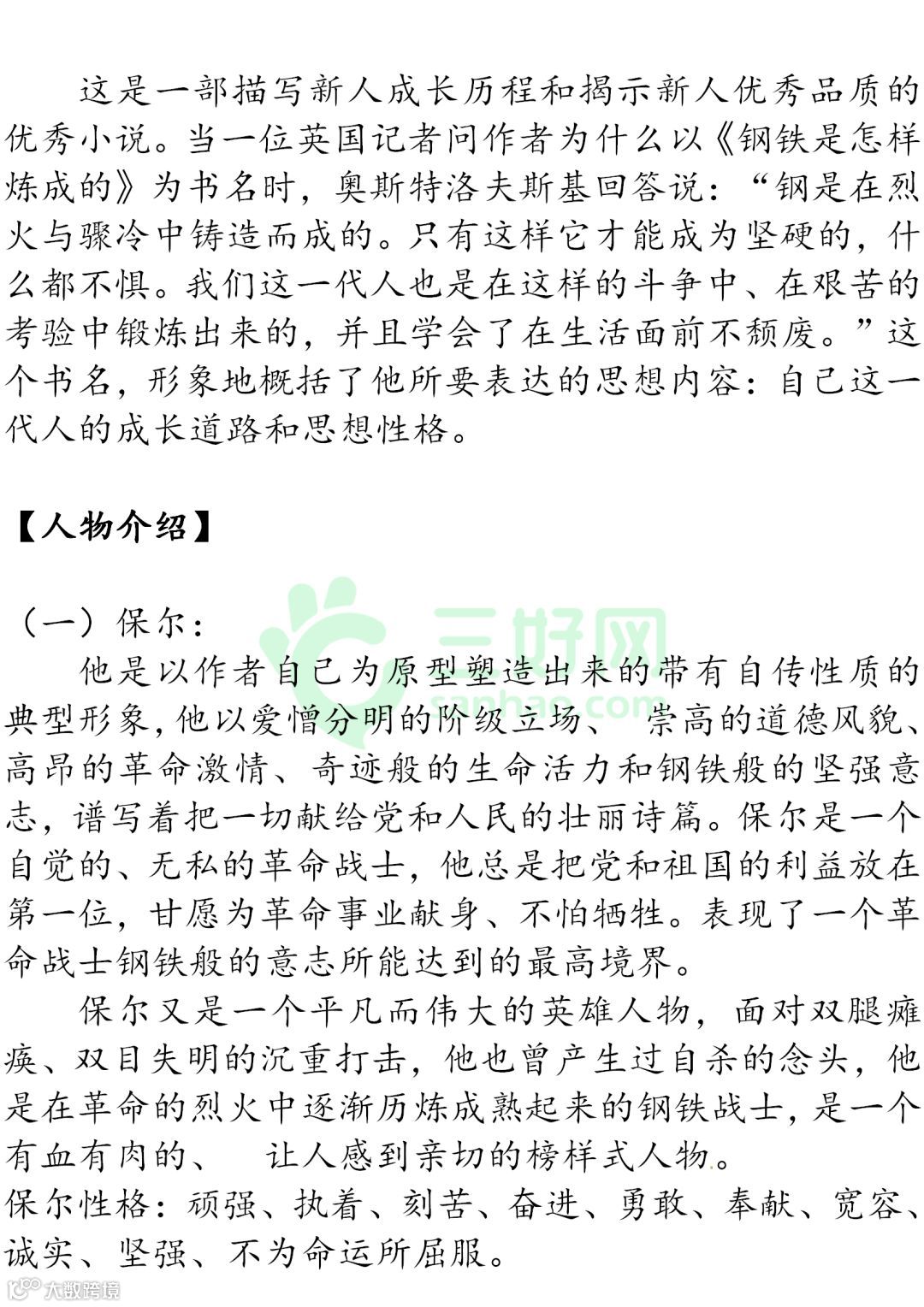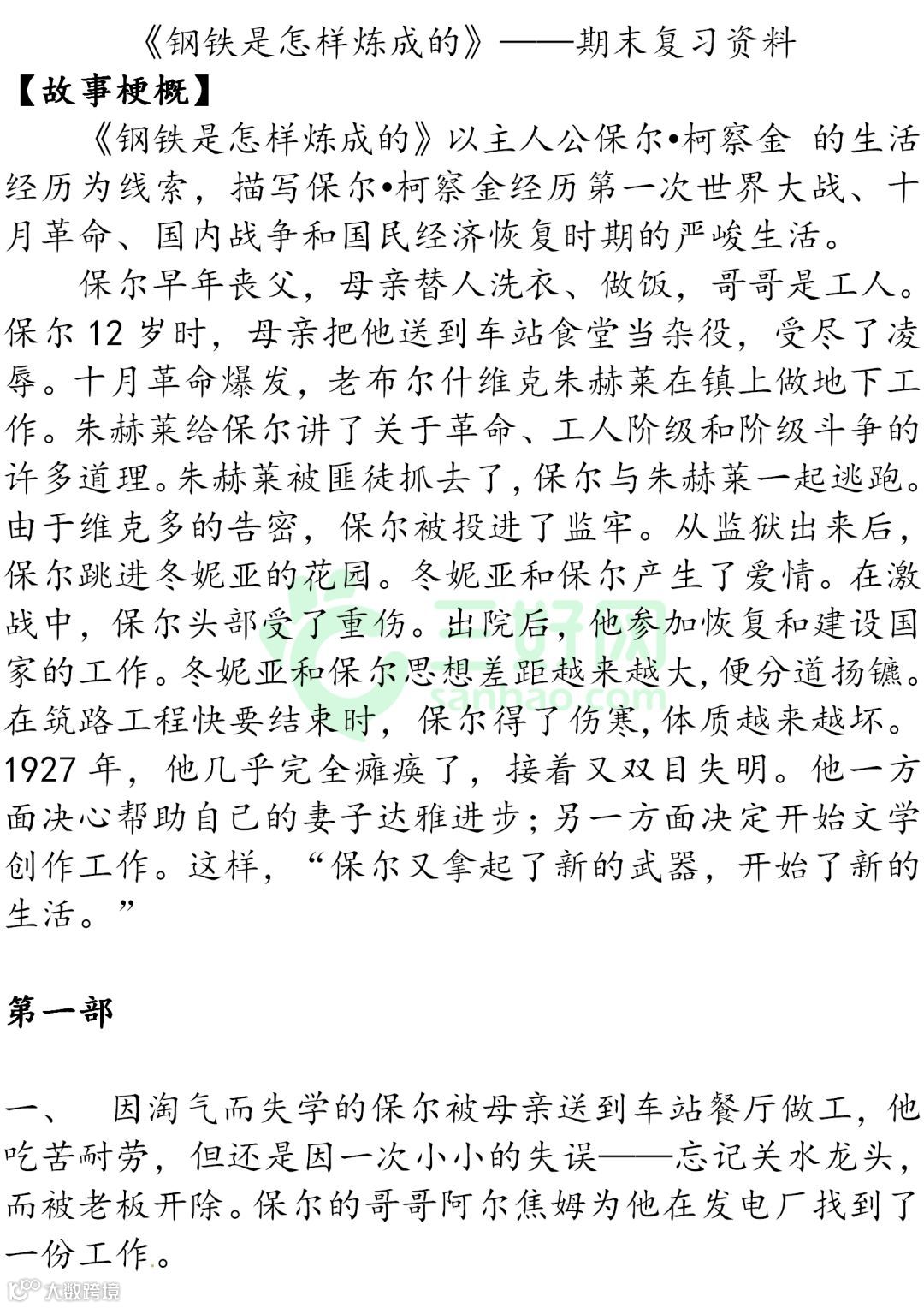 名著导读 | 《钢铁是怎样炼成的》知识梳理