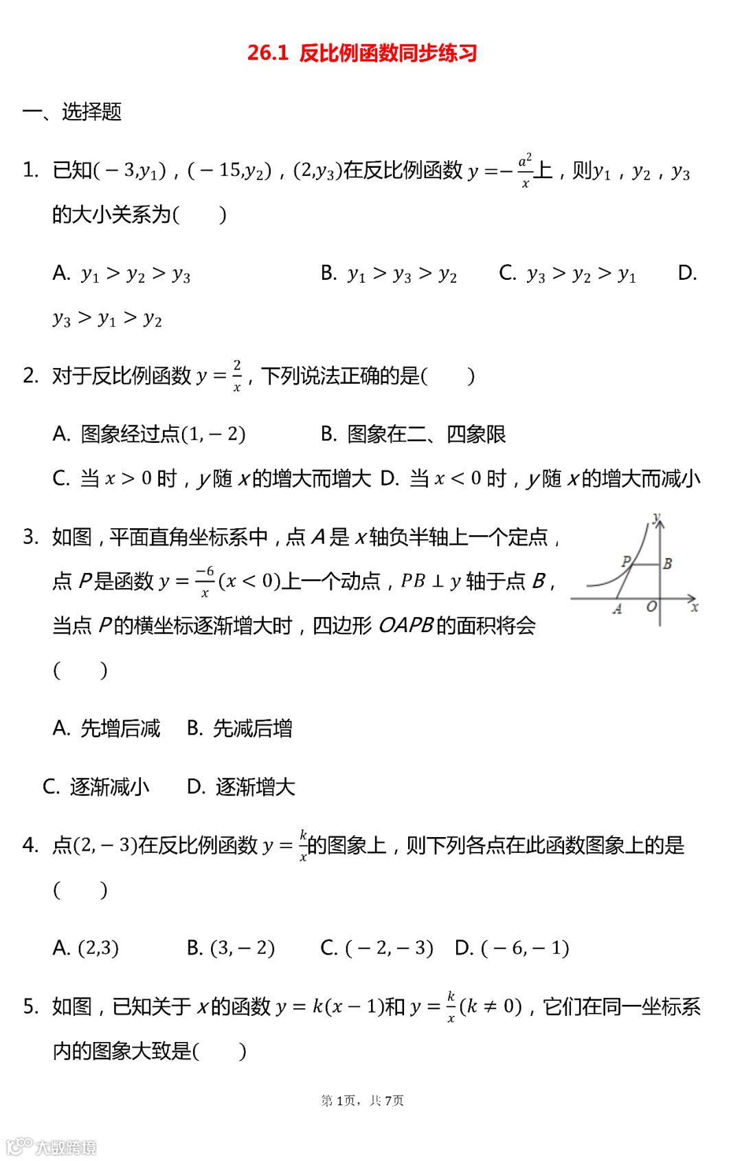 九年级数学 | 反比例函数同步精品练习(有答案)