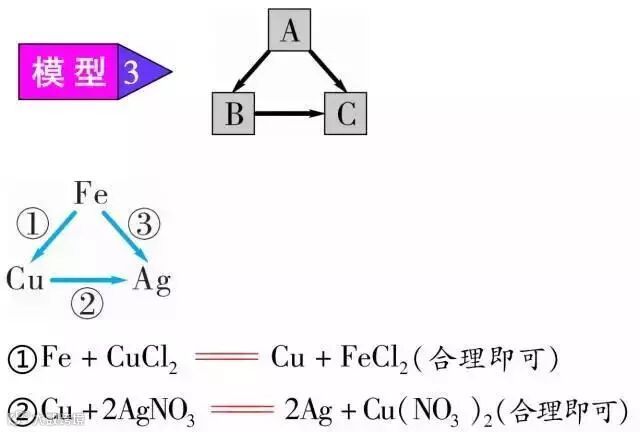 温馨提示:以下三角模型中的“——”“→”“⇄”分别代表物质间的“反应关系”“转化关系”“互变关系”。
