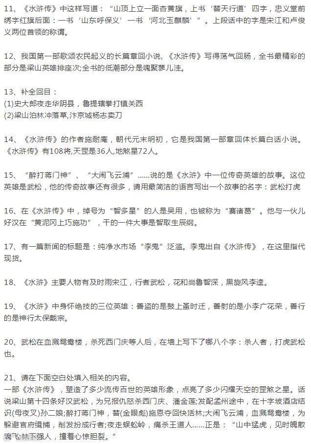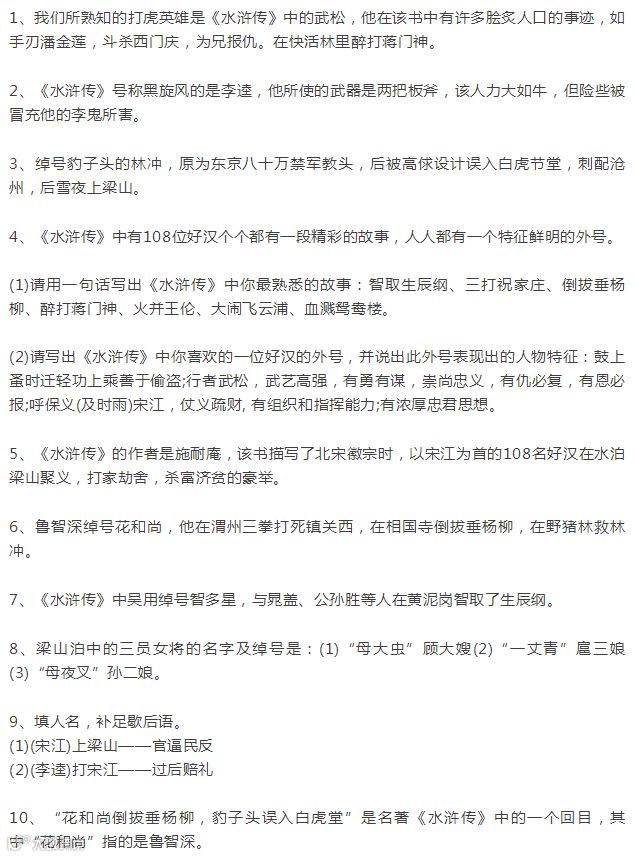 10、结合《三国演义》,说出诸葛亮与周瑜联手指挥的一场著名的以少胜多的战例,是赤壁之战;再说出诸葛亮挥泪斩马谡是因为失街亭一事。