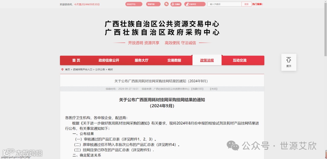 关于公布广西医用耗材挂网采购挂网结果的通知