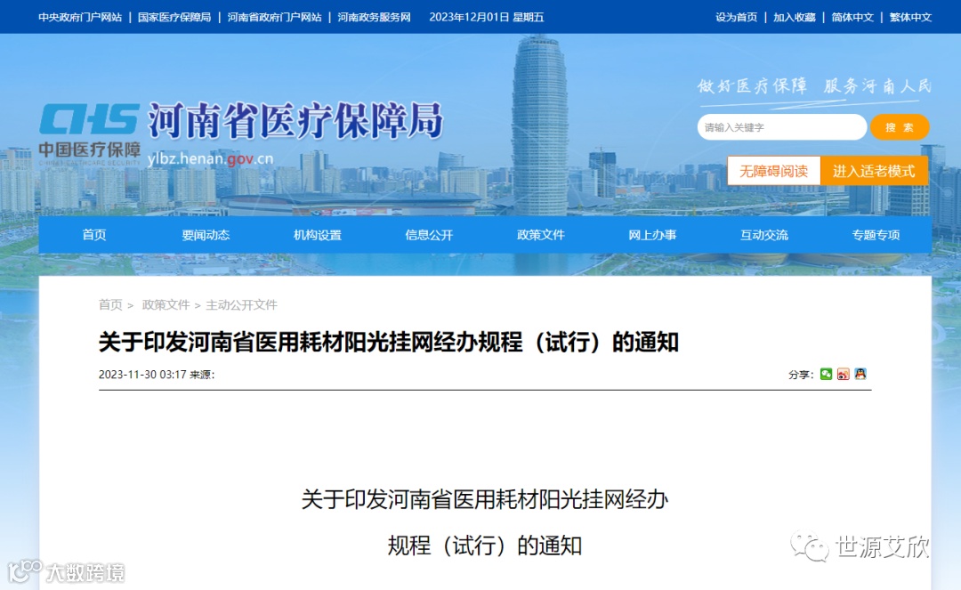 为进一步做好医用耗材阳光挂网工作,根据《河南省医疗保障局关于进一步做好医用耗材阳光挂网工作的通知》(豫医保办〔2023〕85号),我们制定了《河南省医用耗材阳光挂网经办规程(试行)》,现印发给你们,请遵照执行。