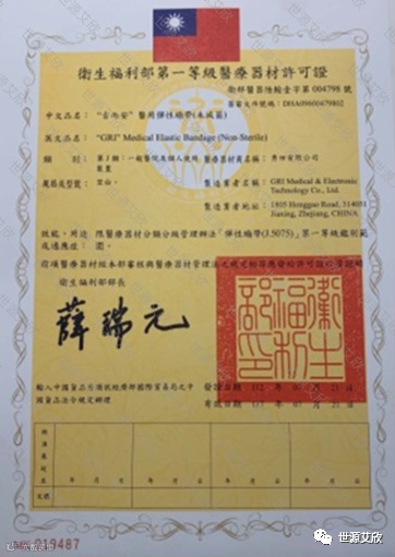 我们的非无菌医疗弹性绷带不久前获得了台湾卫生福利部颁发的一类医疗器械许可证。