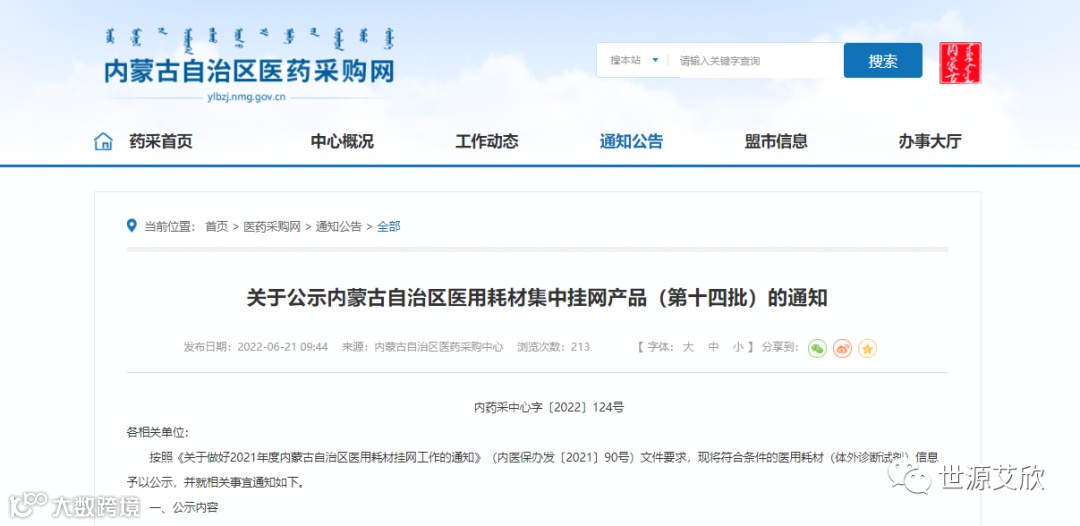 关于公示内蒙古自治区医用耗材集中挂网产品(第十四批)的通知