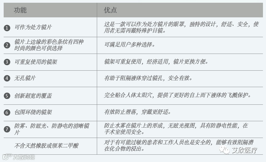 主要供医护人员在医护环境下使用,能够起到有效的保护作用。眼罩边缘光滑,时尚美观,穿戴舒适,可作为处方眼镜。