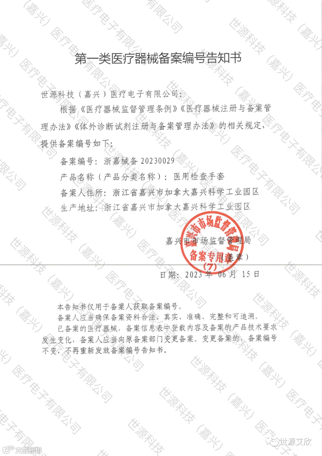 6月15日,GRI 在中国市场成功注册了一级非消毒医用手套。