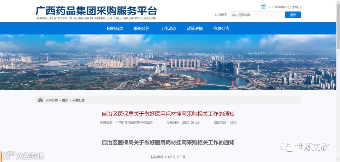 一、请医用耗材生产(代理)企业:2023年8月22日——2023年9月10日登录招采子系统完成耗材挂网产品数据的贯标对码操作,同时在完成贯标对码后进行挂网产品数据确认。