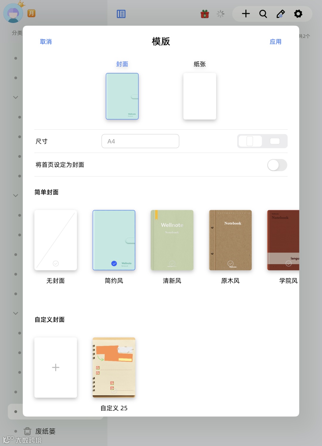 新版本新增自定义封面。同时还支持将笔记或PDF首页固定为封面。