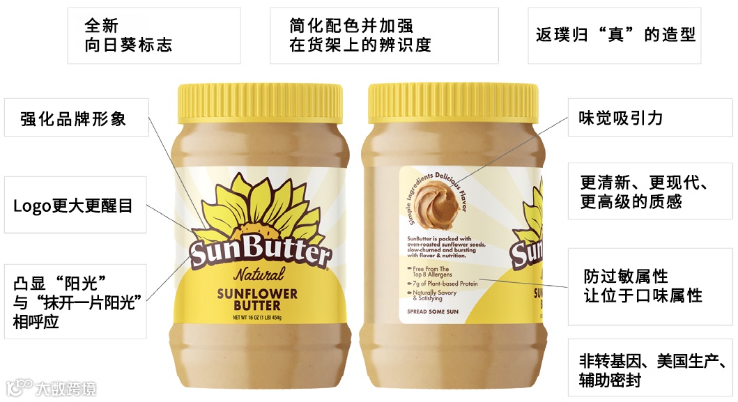 第二步,通过包装测试(PACT),锁定最终获胜的设计——能有效地传达获胜概念中的关键因素,并且能在货架上脱颖而出的设计。在这个阶段,SunButter同时进行了广告素材测试,揭晓了最终“获胜”的创意——它既能够吸引消费者注意,又能传递出驱动消费者喜好的因素,更能激发人们的购买欲。