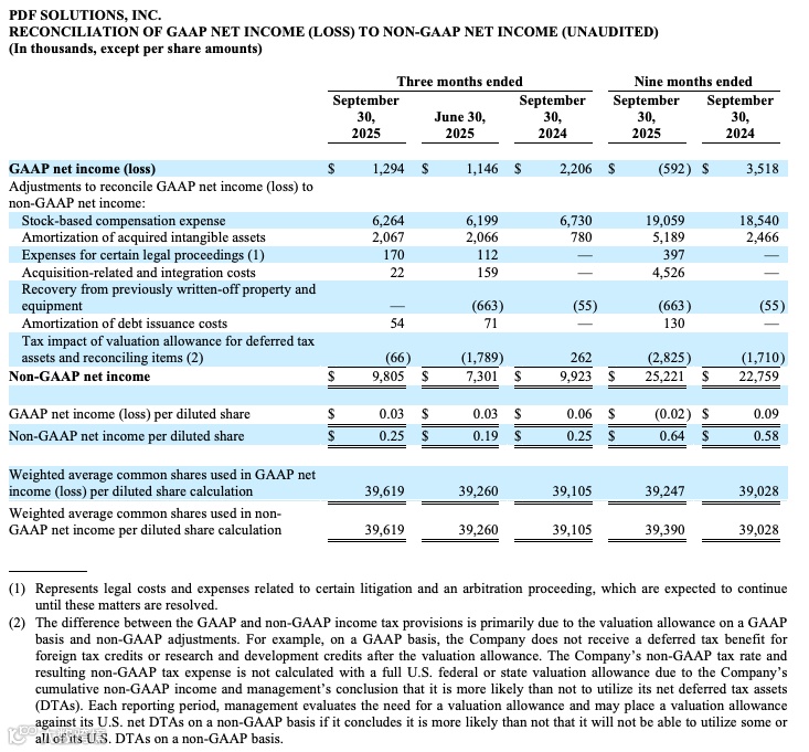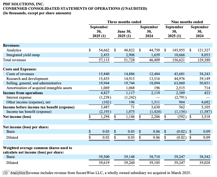 2025年11月6日,普迪飞(PDF Solutions)公布了截至2025年9月30日的第三季度财务业绩。