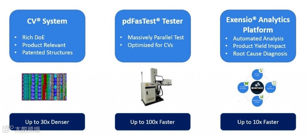 CV 系统包含超越 PPB (十亿分之一) 的统计分辨精度、广泛全面的 Layout Pattern 实验设计(DoE),高面积效率和自动化分析。一个全光罩测试芯片整个 Lot 的所有测试与分析可以在不到一天的时间内完成 。