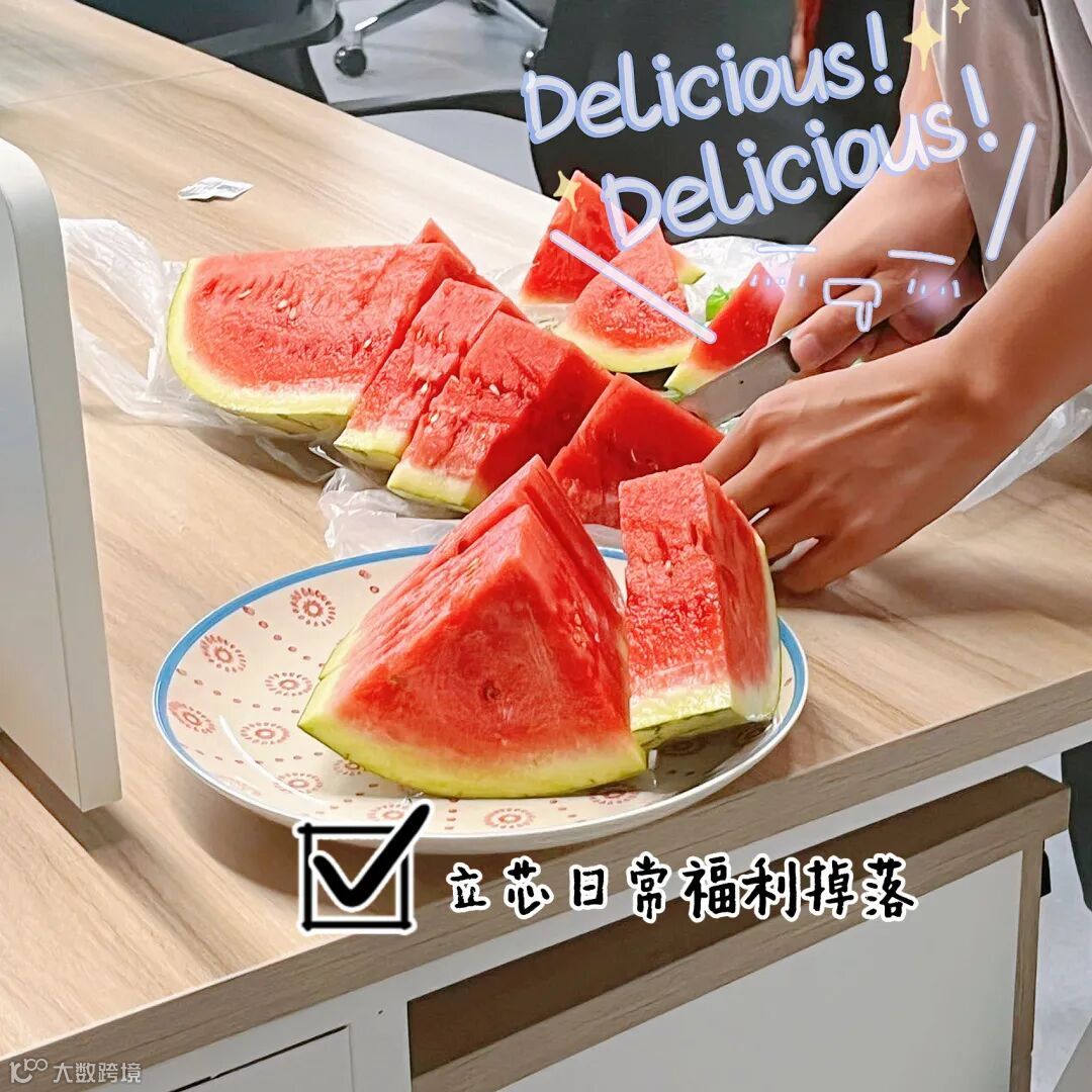 同时值得一提的是,立芯办公室还经常有“随机福利”掉落。正如此时正值炎炎夏日,立芯便为大家准备了冰爽的西瓜。