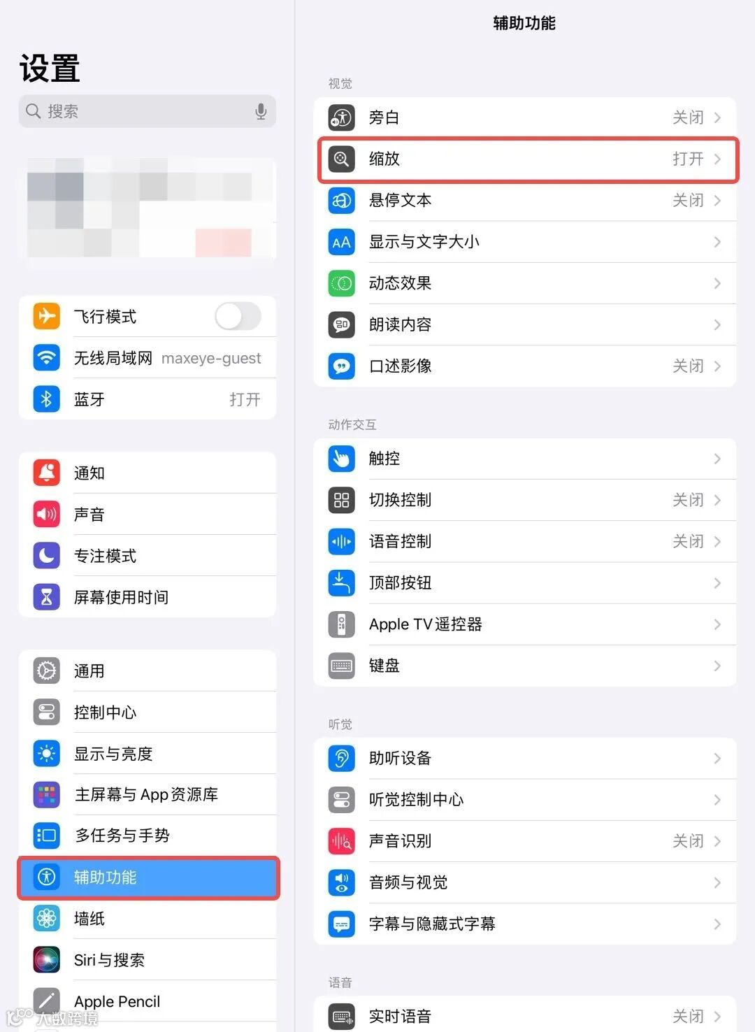 按画中画分屏教程进行操作后,三指双击出放大镜,点击下方白色横条可拖动放大镜,调节放大镜大小和放大倍数,直到调整视频画面到合适大小和位置。