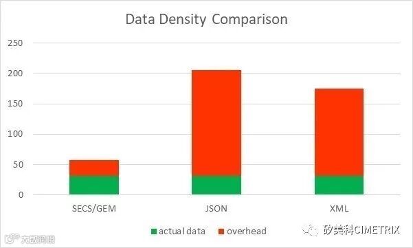 根据使用的传输协议,XML和JSON也可能增加开销。例如,XML通常使用SOAP通过HTTP传输,这就为每个消息增加了额外的两层开销和更多的字节。SECS/GEM所显示的字节数是实际通过TCP/IP上的网络传输的。