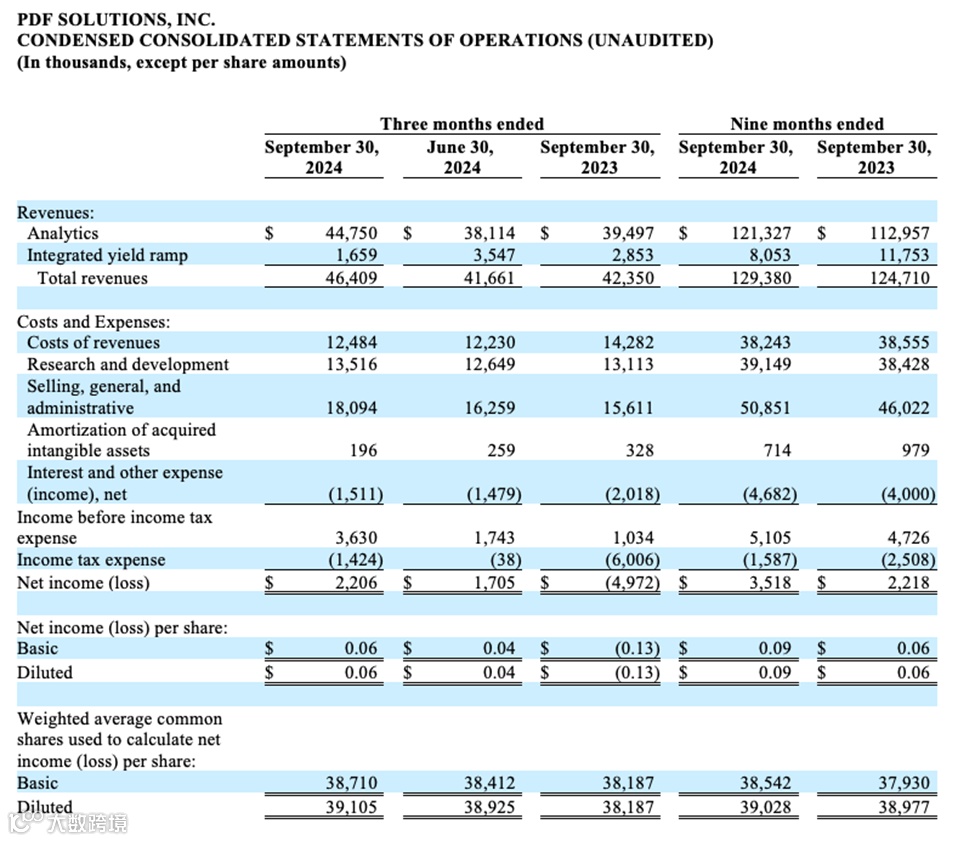 点击“阅读原文”查看PDF Solutions® 2024 年Q3财报原文。