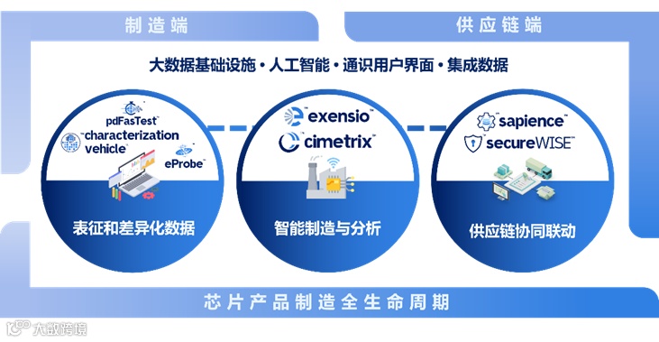 公司以 AI 驱动的通用数据基础设施为底座,构建三大半导体产业全生命周期解决方案:表征与差异化数据(pdfaTest、eProbe)精准采集芯片数据,智能制造与分析(Exensio、Cimetrix)优化产线效率,供应链协同联动(Sapience、SecureWISE)打破数据壁垒。七大核心产品更形成【设备接入 - 检测分析 - 流程协同 - 验证交付】闭环,覆盖制造数据采集与智能决策。