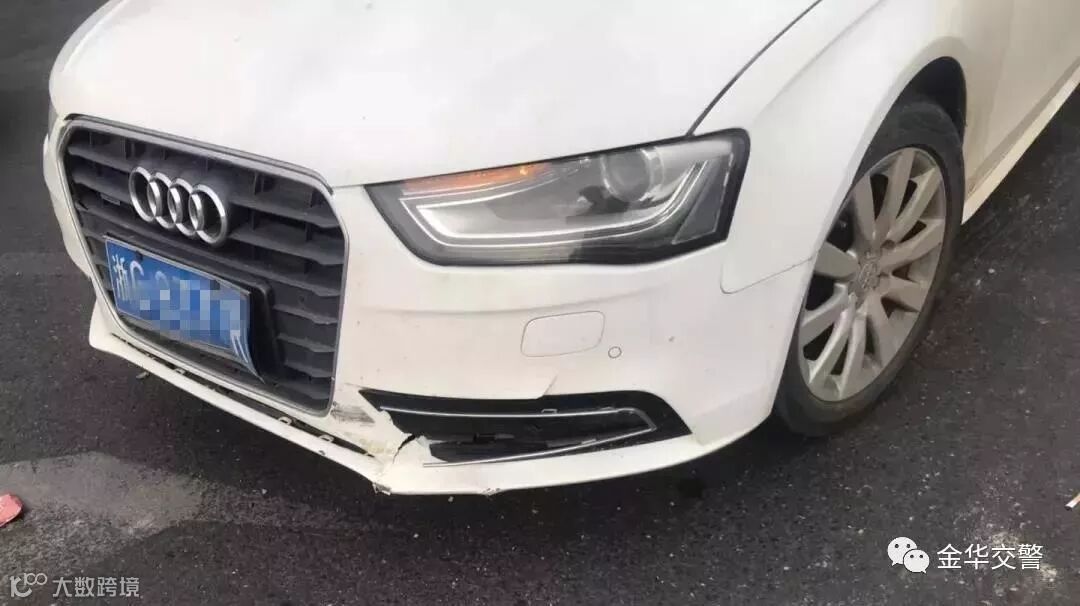 一辆白色奥迪轿车通过义乌市江滨路与丹溪路交叉口时,看见前方黄灯闪烁,一心只想赶在亮红灯前冲过路口。