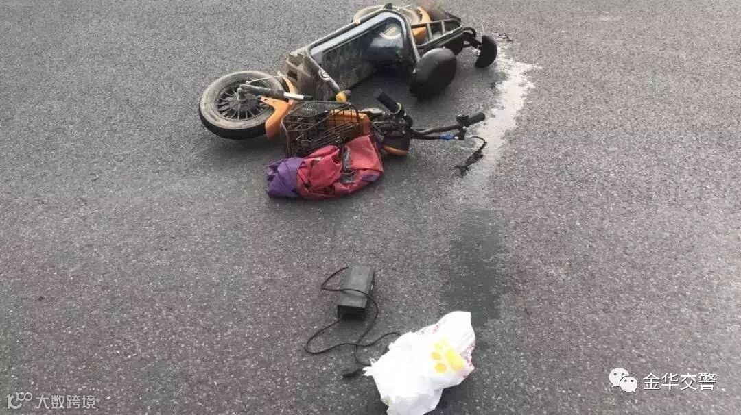 事故中,电瓶车车主在重摔之下只是头皮磕破,并无大碍。