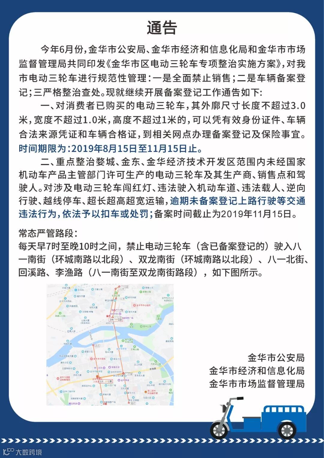 逾期未备案登记上路行驶的电动三轮车或将被依法扣车!