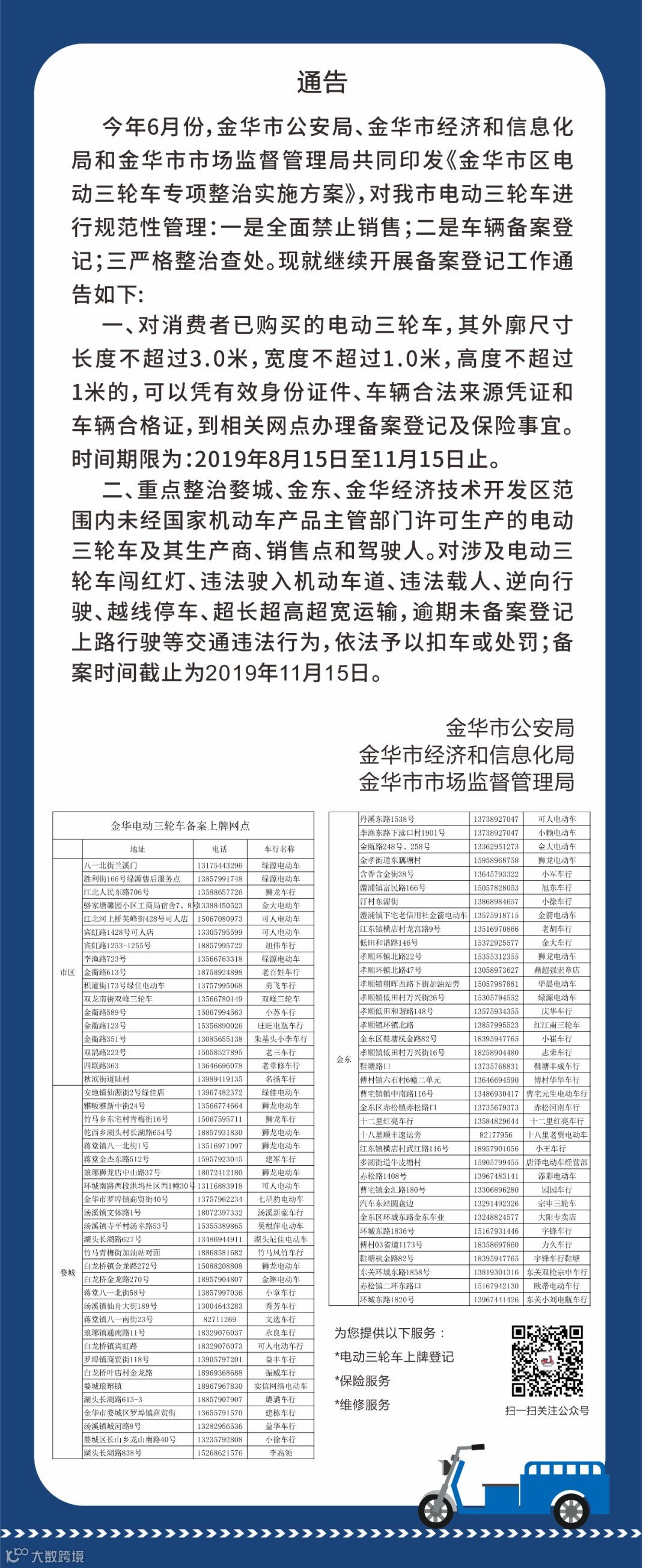 金华市本级电动三轮车