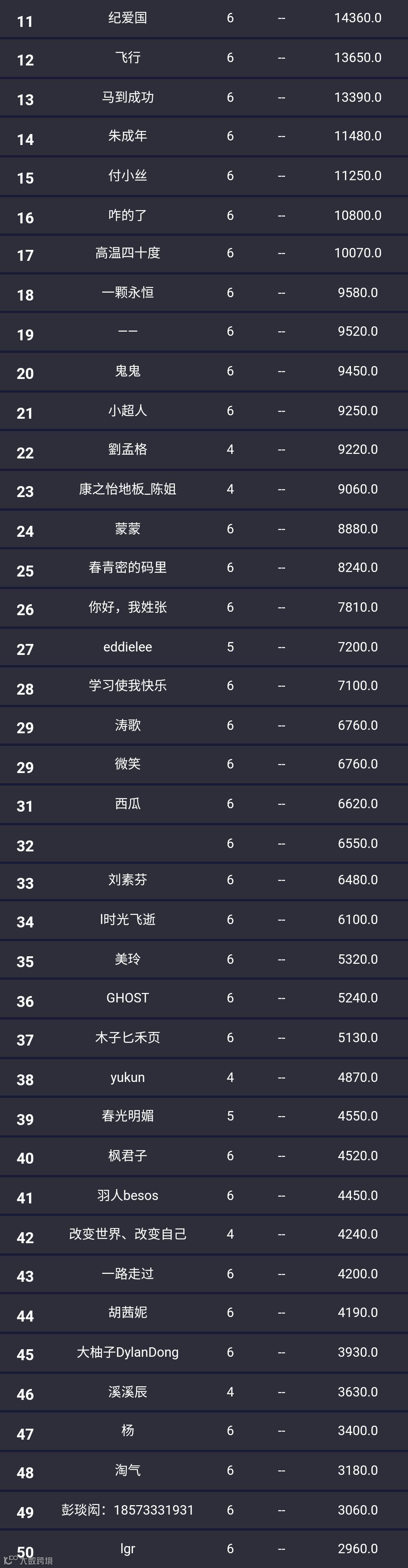 第十一名 - 第五十名:100元