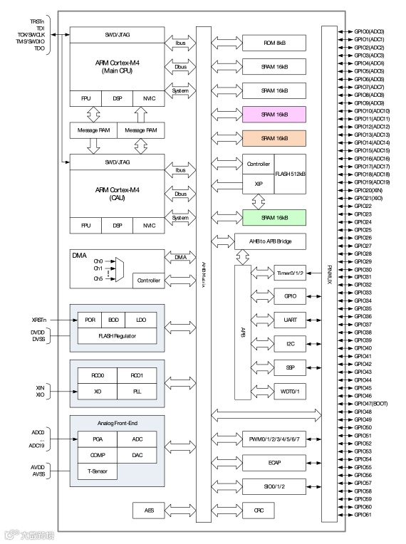 200MHz Dual-Core ARM 32位Cortex-M4 CPU