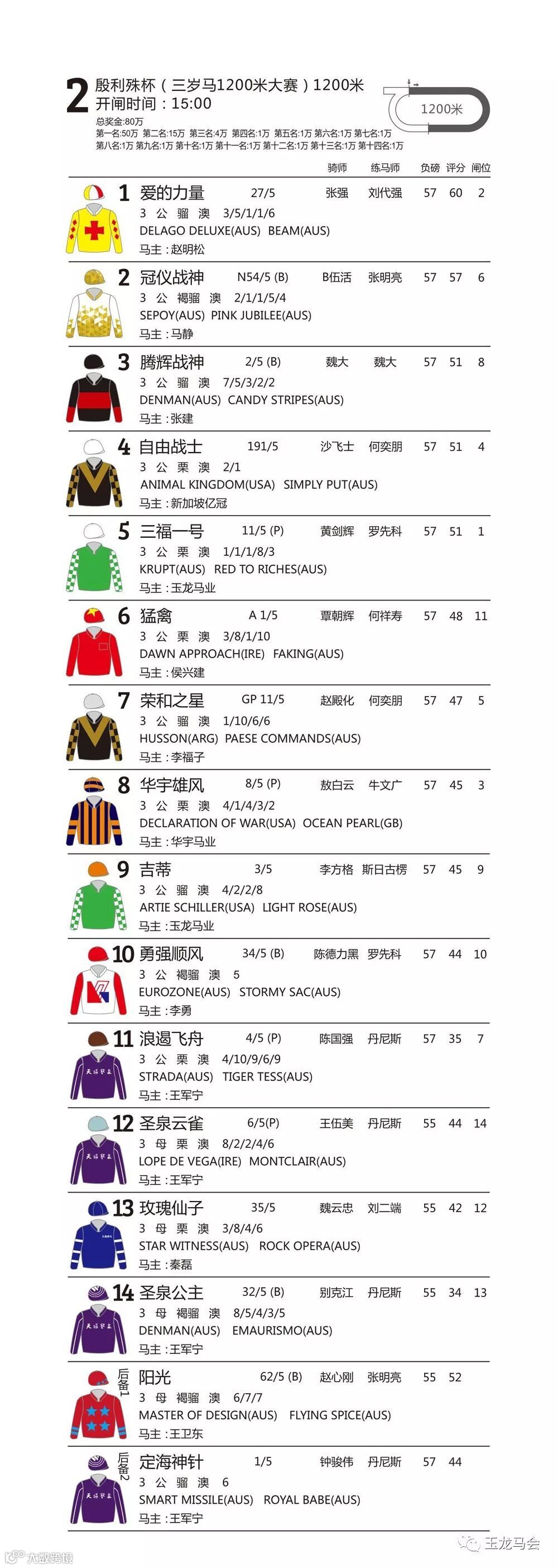 第2场 殷利殊杯(三岁马1200米大赛)