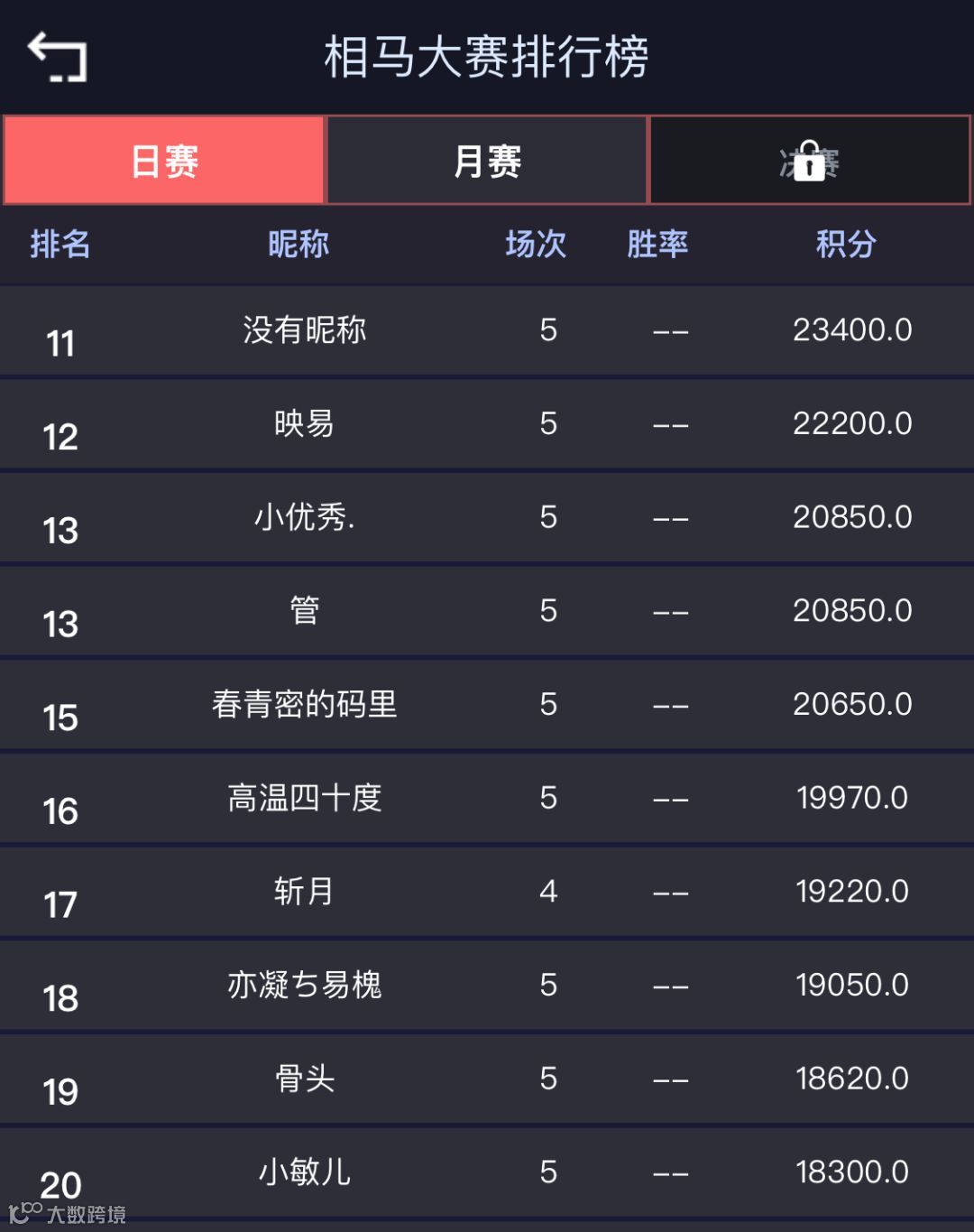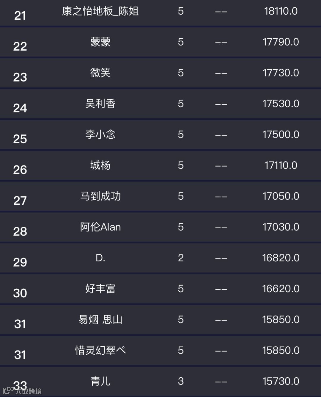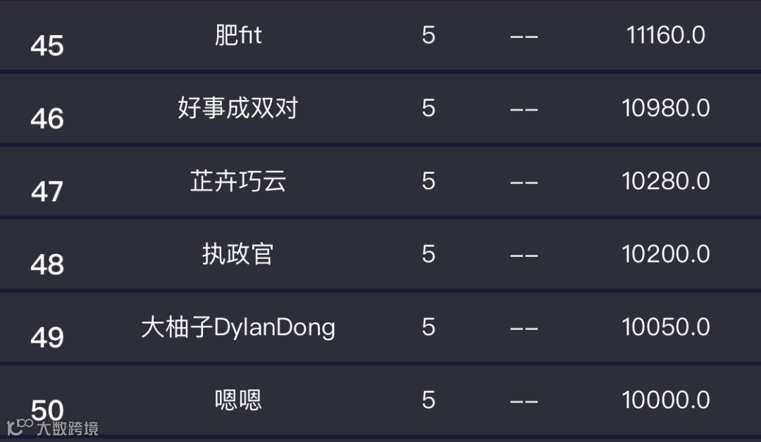 第十一名 - 第五十名 20元