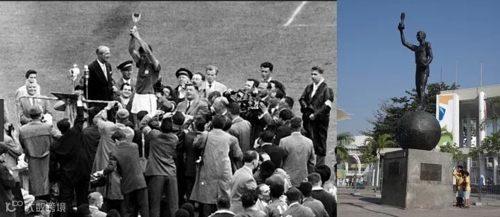 就这样,这张夺冠照片流传到了世界各地,从那以后,每个冠军球队都做过和贝利尼一模一样的动作,至今在马拉卡纳体育场门口还有贝利尼的雕像,造型也是经典的“举杯”。
