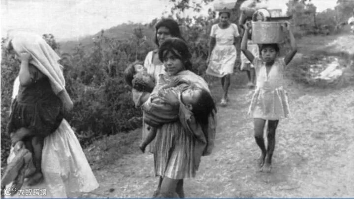 因为战争从洪都拉斯步行迁往危地马拉避难的妇女