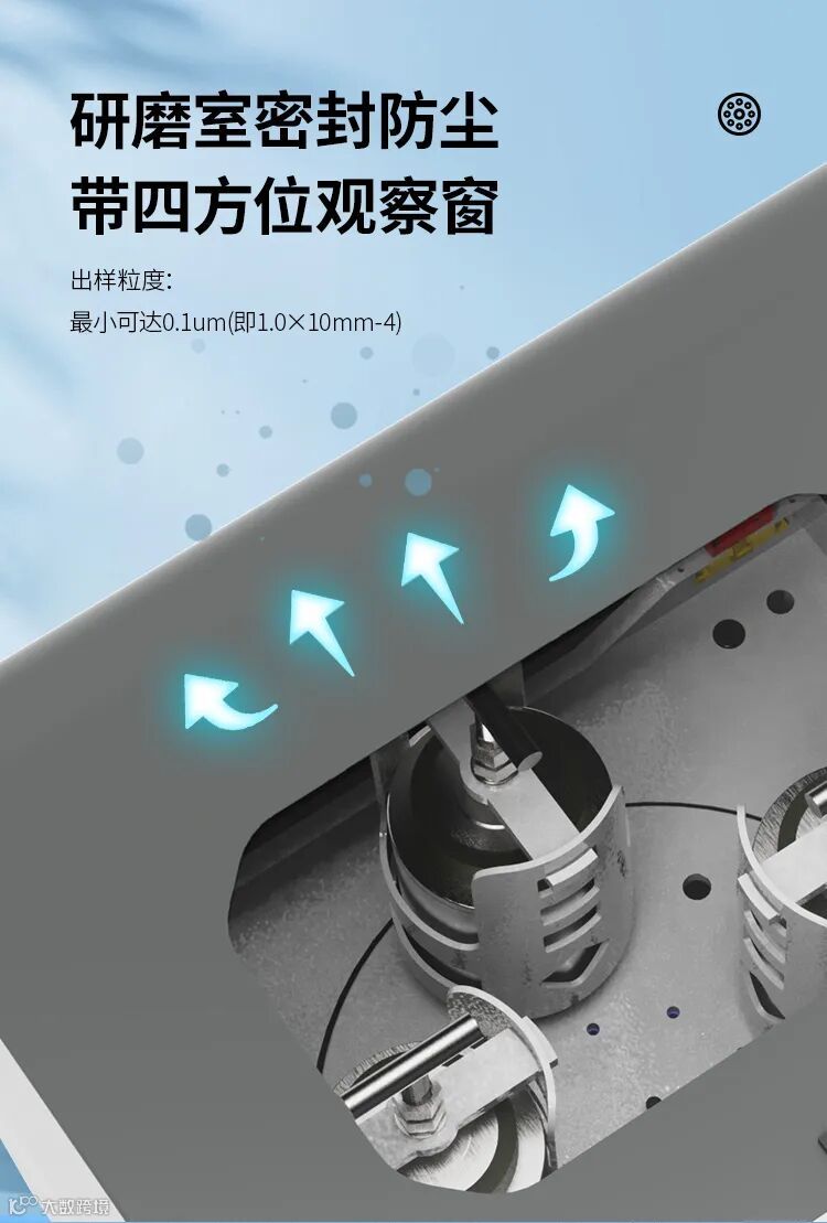通过研磨球或研磨盘在研磨碗内的复杂运动轨迹(撞击力、剪切力、摩擦力复合作用),实现土壤样品的均匀细磨。