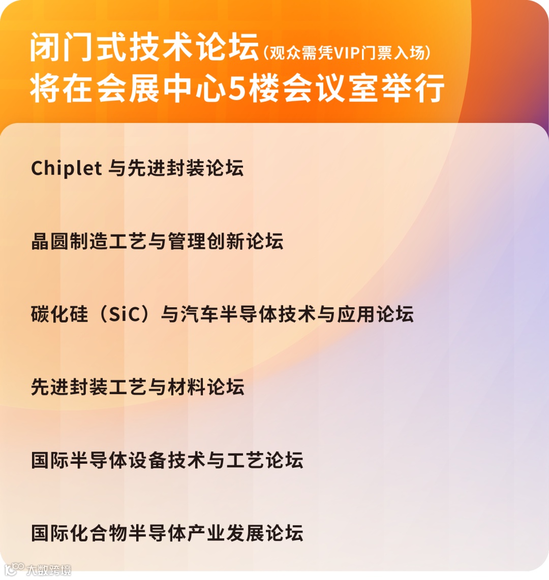 半导体产业链各赛道一直受到投资机构/基金的持续关注,本次展会将同期举办半导体产业投资与发展论坛。届时,众多产业基金、投资机构等业界精英将汇聚一堂,共同探讨半导体行业未来的投资方向与投资策略等关键议题,共谋行业发展大计。