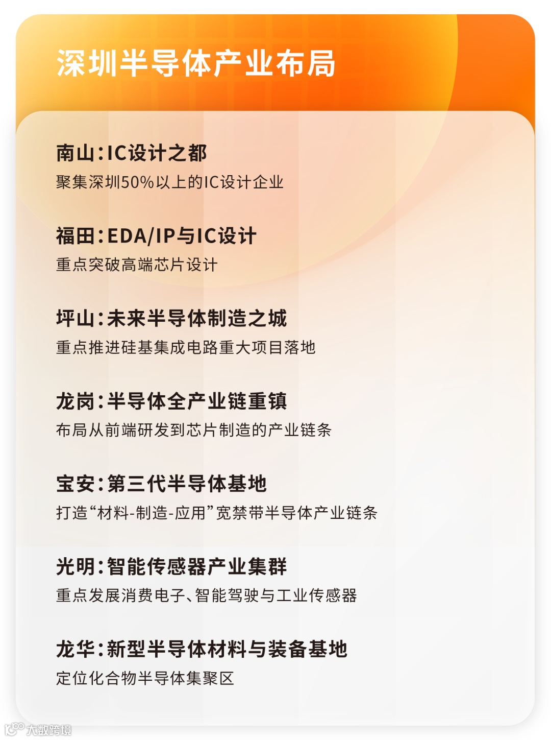 被誉为半导体“中国最大增量市场”,大湾区半导体产业发展正如火如荼,吸引了业界的广泛关注。本次展会上,深圳各区展团将集体亮相,充分展现湾区半导体“芯”势力的蓬勃生机与无限潜力。当前,深圳各区的半导体产业发展布局大致如下: