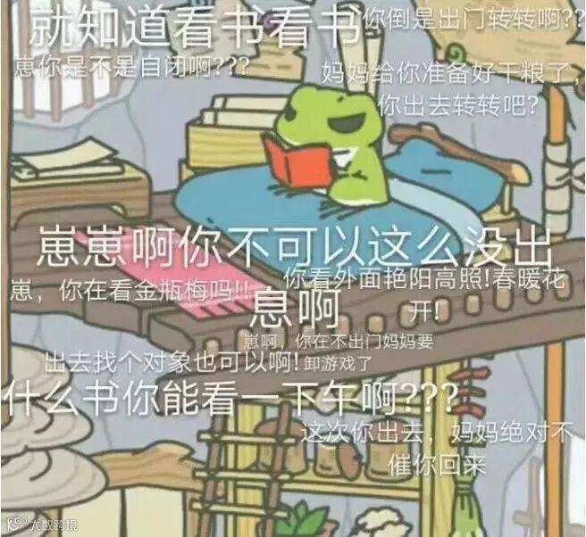 “就知道看书看书,你倒是出门转转啊!崽儿你是不是有自闭症啊???”