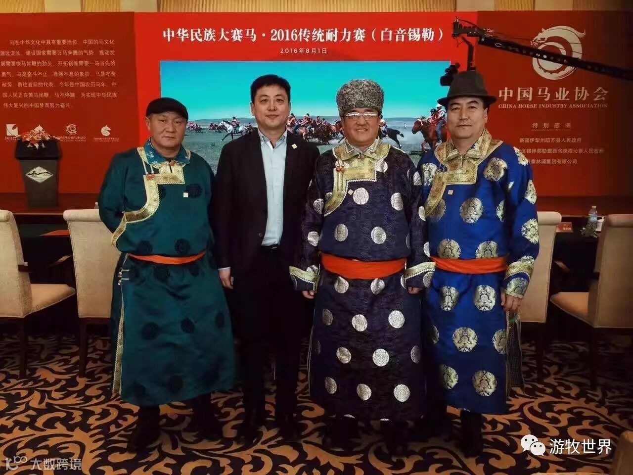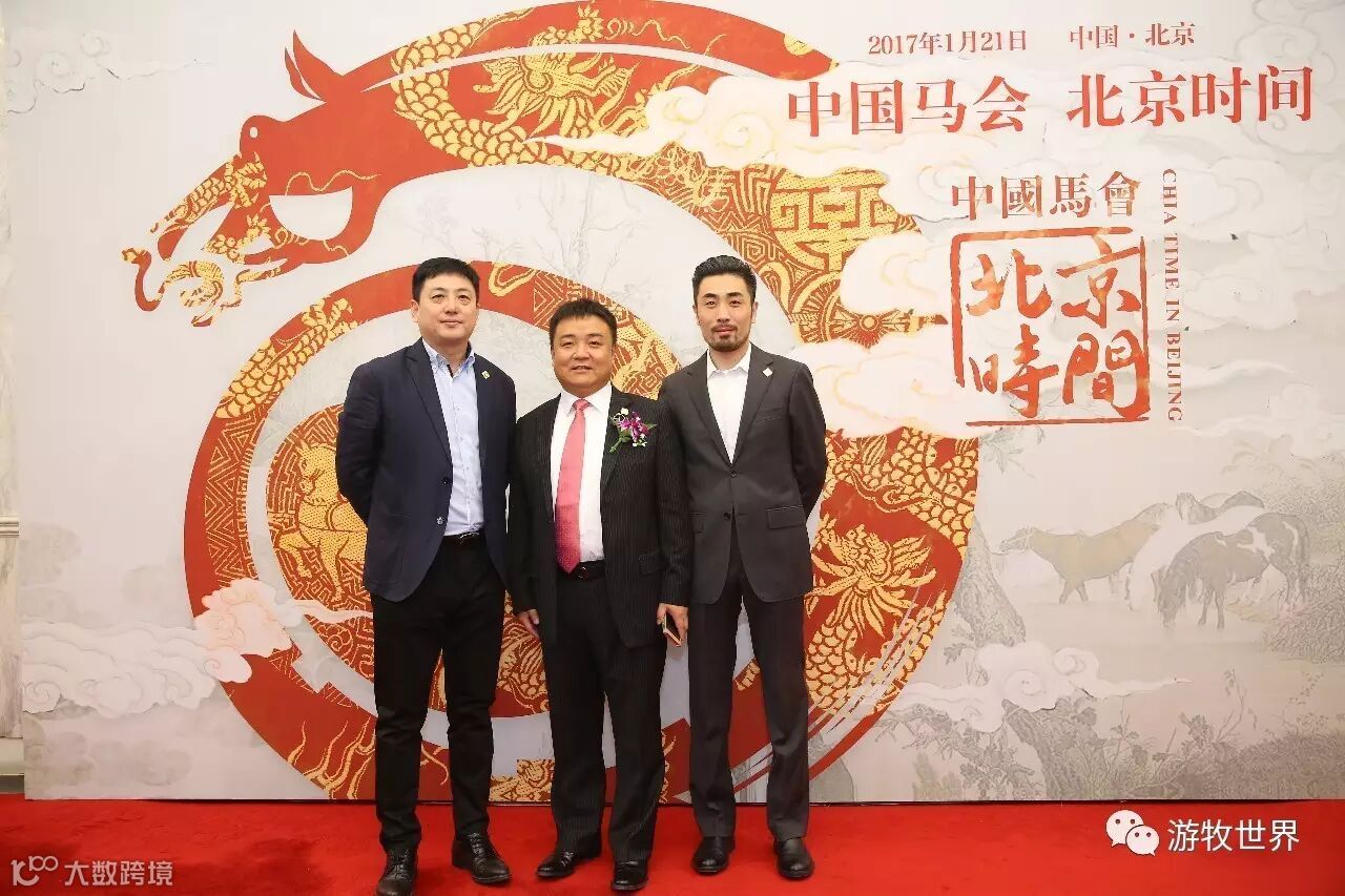 中国马会秘书长·岳高峰 (中)、游牧世界董事长·闫宏翔(左)、游牧世界总经理·郭阳(右)