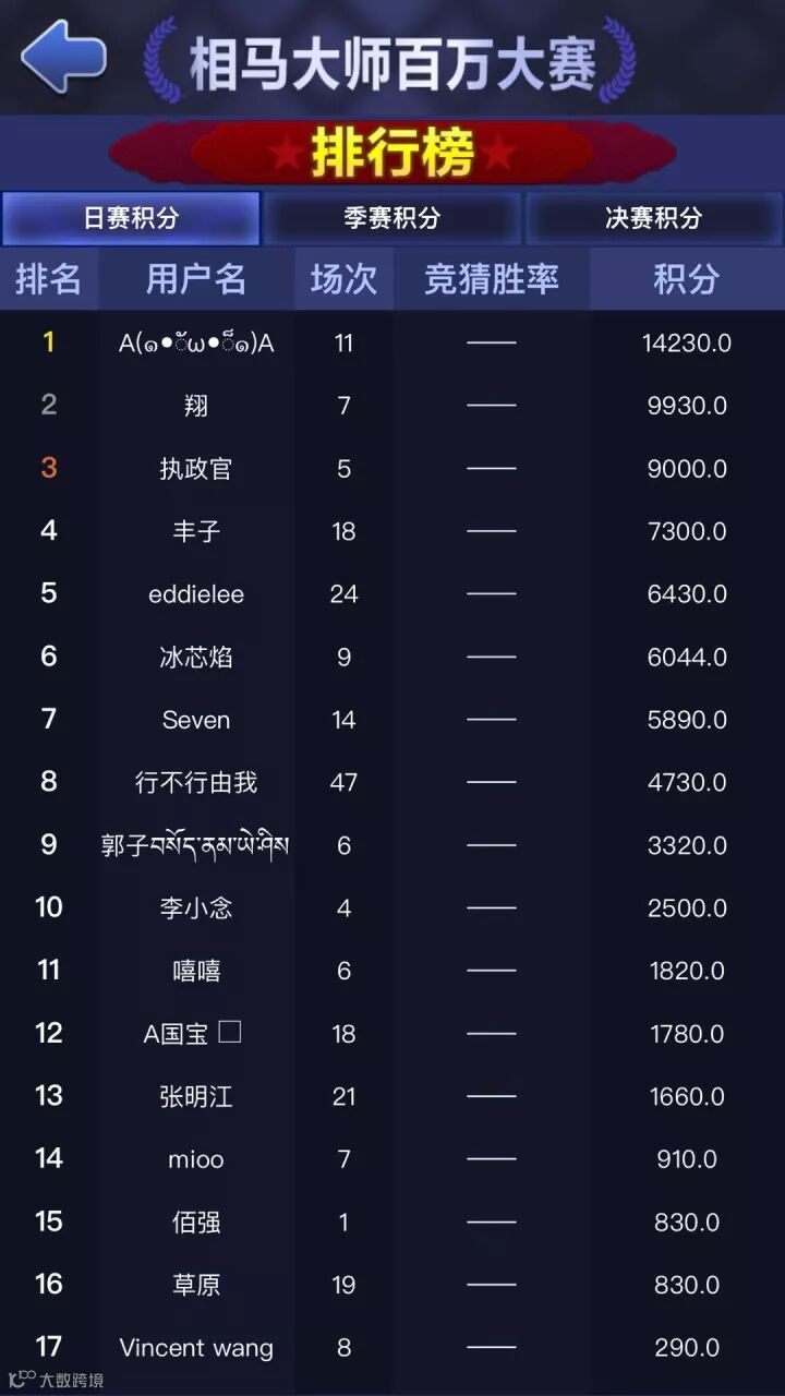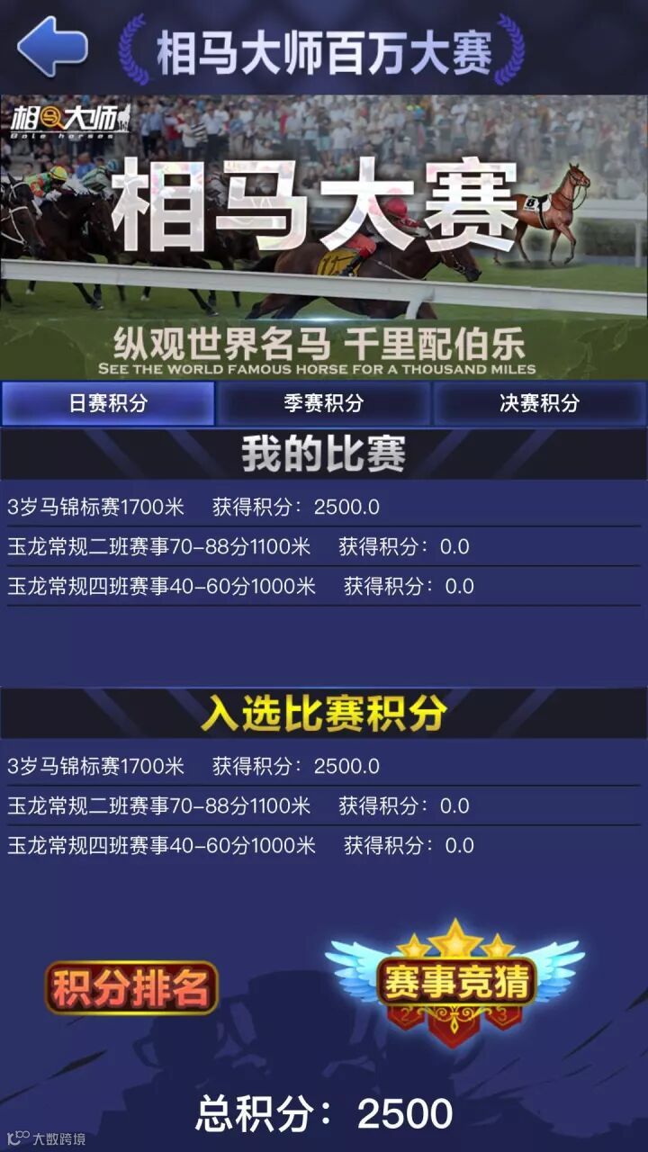 此外,由此款竞猜应用软件衍生而出的独家IP赛事《相马大师百万大赛》体验赛也将于12月9日正式开赛,该赛事由业内著名专业顾问亲身指导,并已制定出成熟的赛制规则,设定高额奖金吸引潜在用户前来参赛。体验赛预计2个月时间,赛制日每场比赛积分排名前50名,都可获得相应数额奖金,2018年度将全年开启常规赛,累计积分排名之后,第一名可获得100万赛事奖金鼓励。
