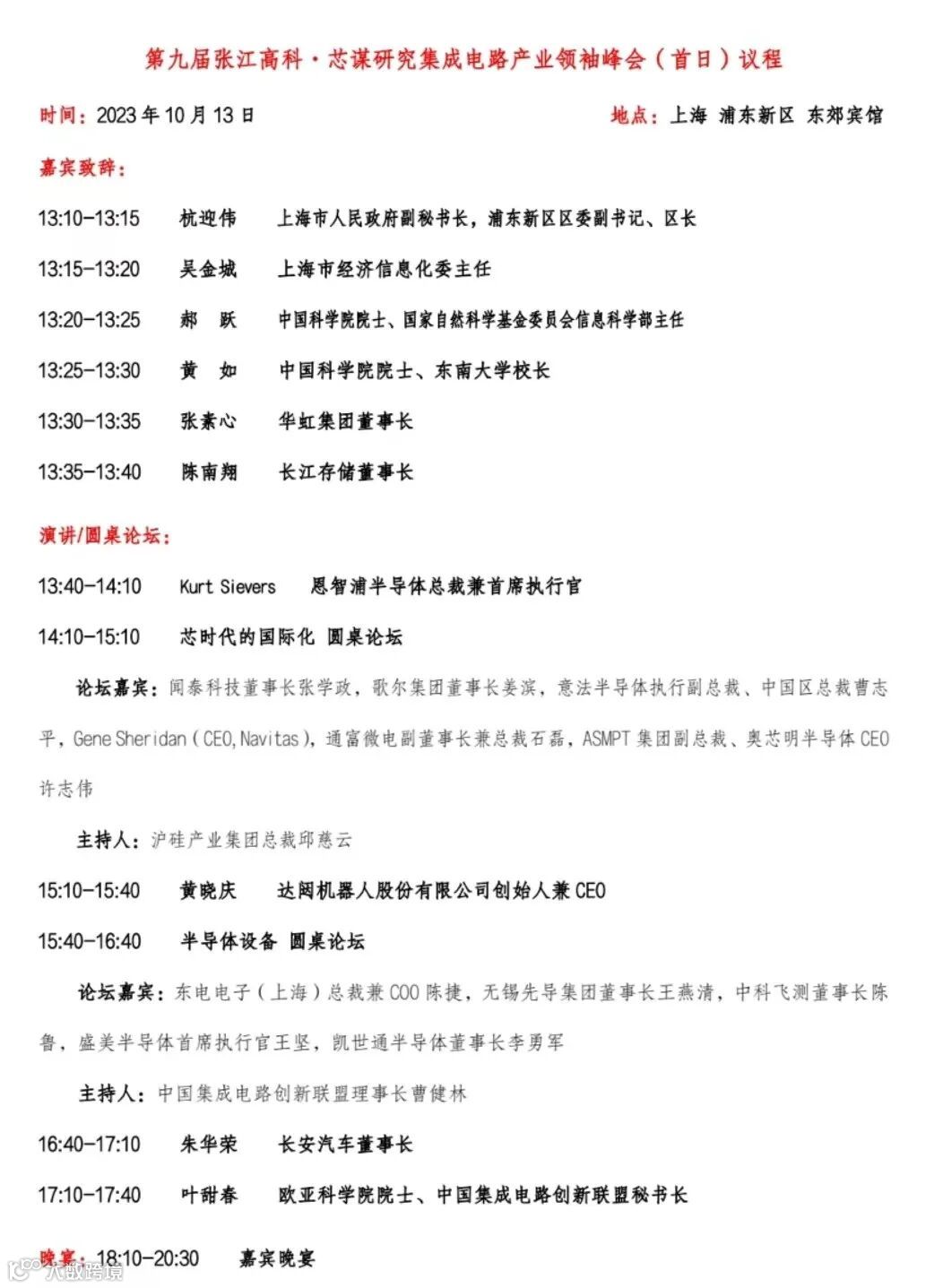 本届峰会特设“芯时代的国际化”圆桌论坛。闻泰科技董事长张学政;歌尔集团董事长姜滨;意法半导体执行副总裁、中国区总裁曹志平;Gene Sheridan(CEO, Navitas);通富微电副董事长兼总裁石磊;ASMPT集团副总裁、奥芯明半导体CEO许志伟等国内外半导体企业负责人参与,共同探讨新形势下的全球化内涵变化以及中国市场如何适应这种变化。沪硅产业集团总裁邱慈云担任本论坛主持人。