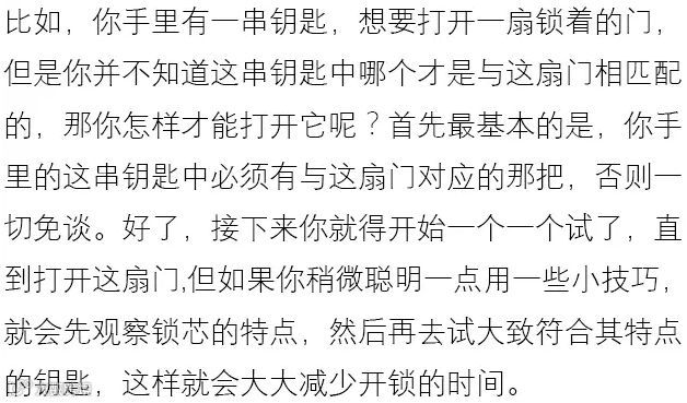 你要想解决一道物理题,首先你的技能包中必须有这道题所涉及的相关知识点,比如速度、路程、牛顿定律等等。接下来,怎样从你杂乱的技能包中快速准确地找出解决这道题所需要的那把钥匙呢?这就需要你去仔细观察题目的特点(就像观察锁芯的构造一样),然后思考哪些知识点、公式、模型是与之相匹配的。
