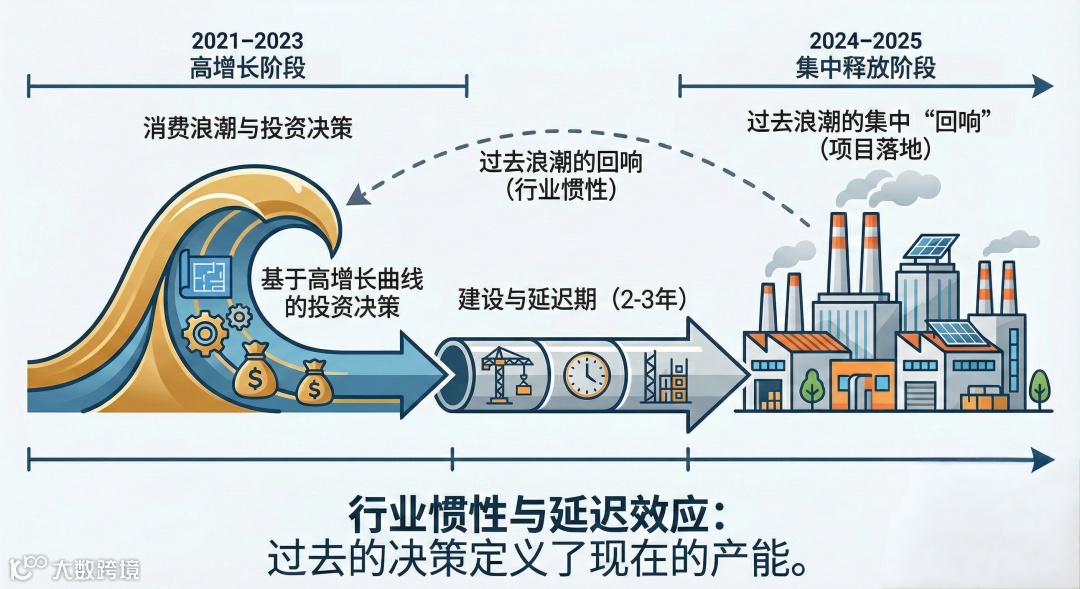 “以前是看谁产能大,现在是看谁反应快。” 一位资深从业者表示,需要警惕的是,企业扎堆扩厂,既有自身发展的“倒逼”,也有行业周期的“惯性”。 许多在2024-2025年落地的项目,实则是基于2021-2023年行业高增长曲线做出的投资决策——如今经过两三年施工周期,集中进入“落地释放期”。现在看到扎堆投产的这些工厂,其实是三年前那波消费浪潮的回响。