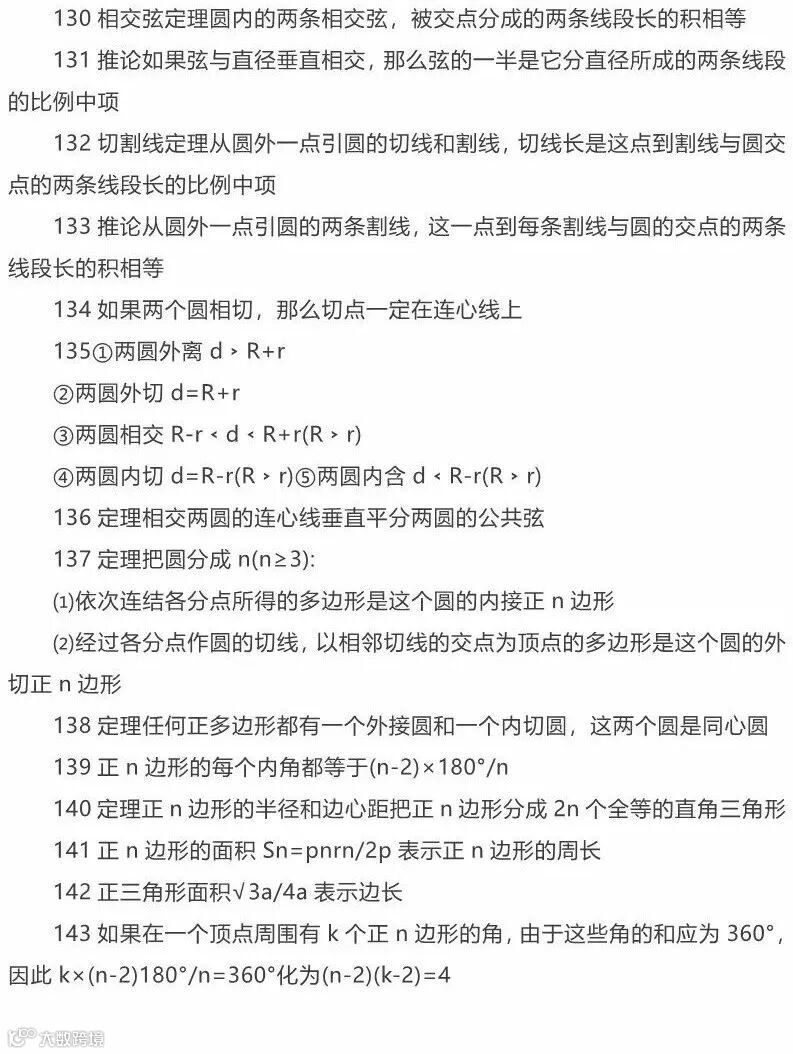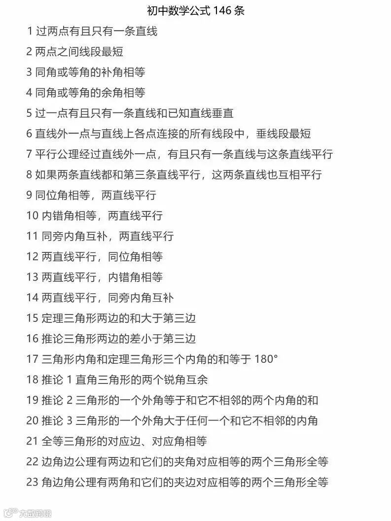 初中数学公式146条,期中考试前一定要掌握!!