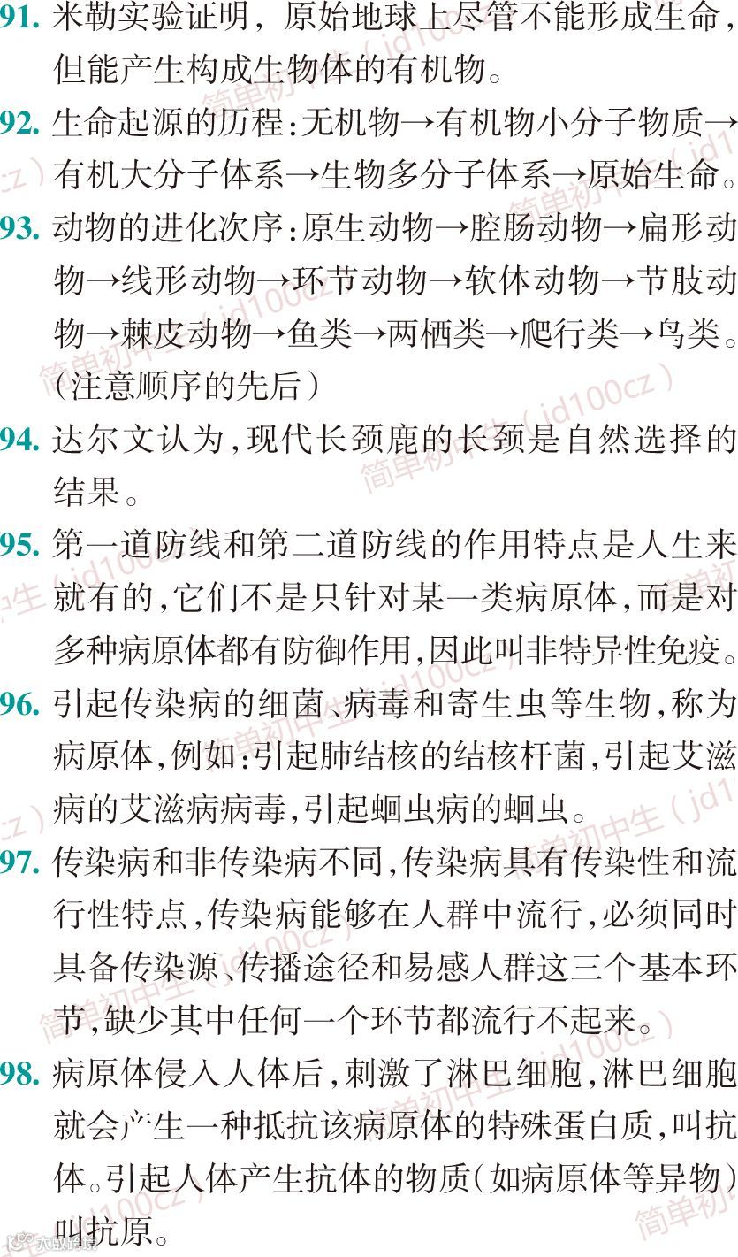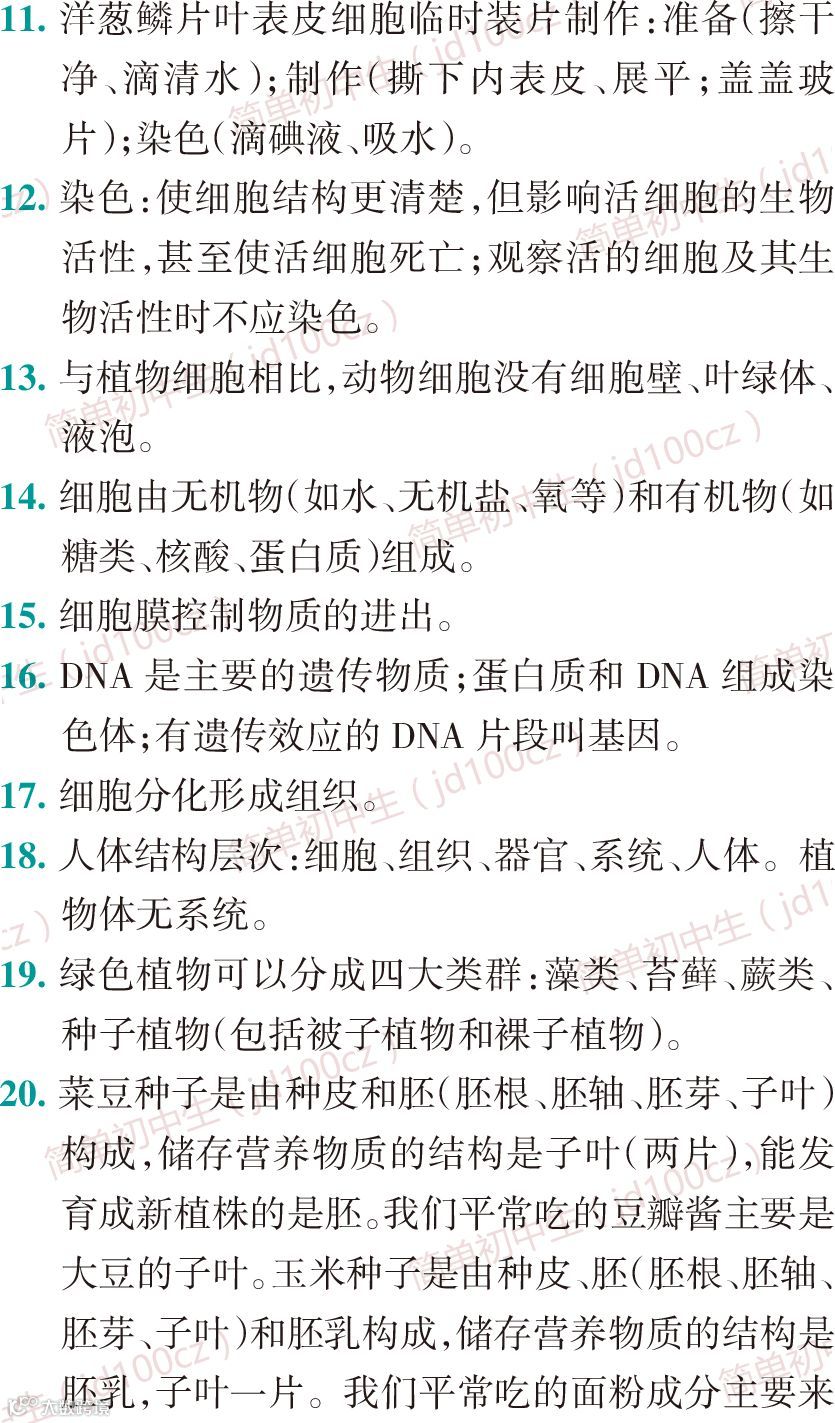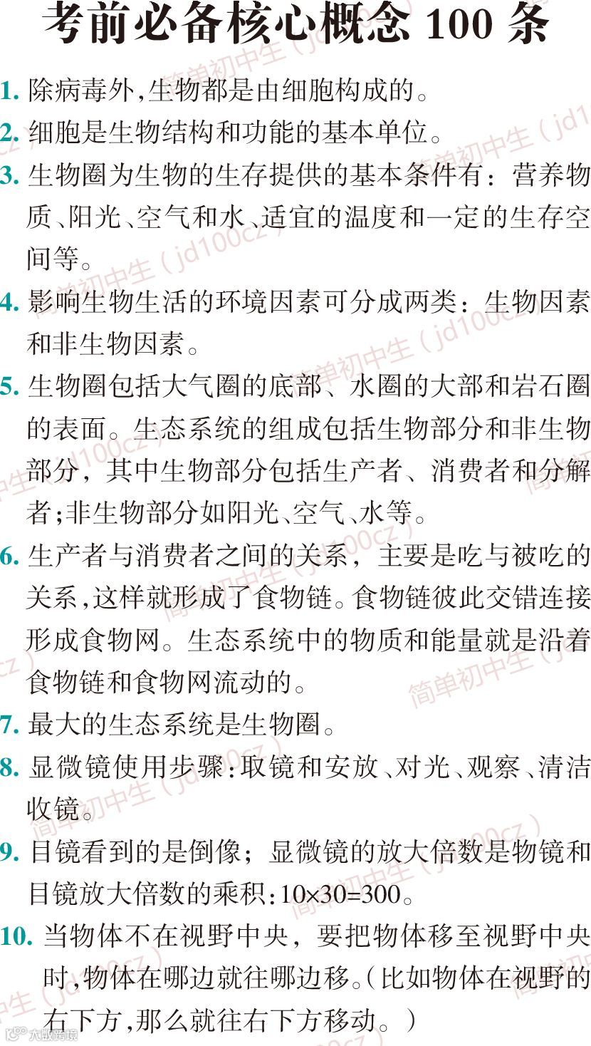 初中生物必背核心概念100条,考试满分就靠这些了!