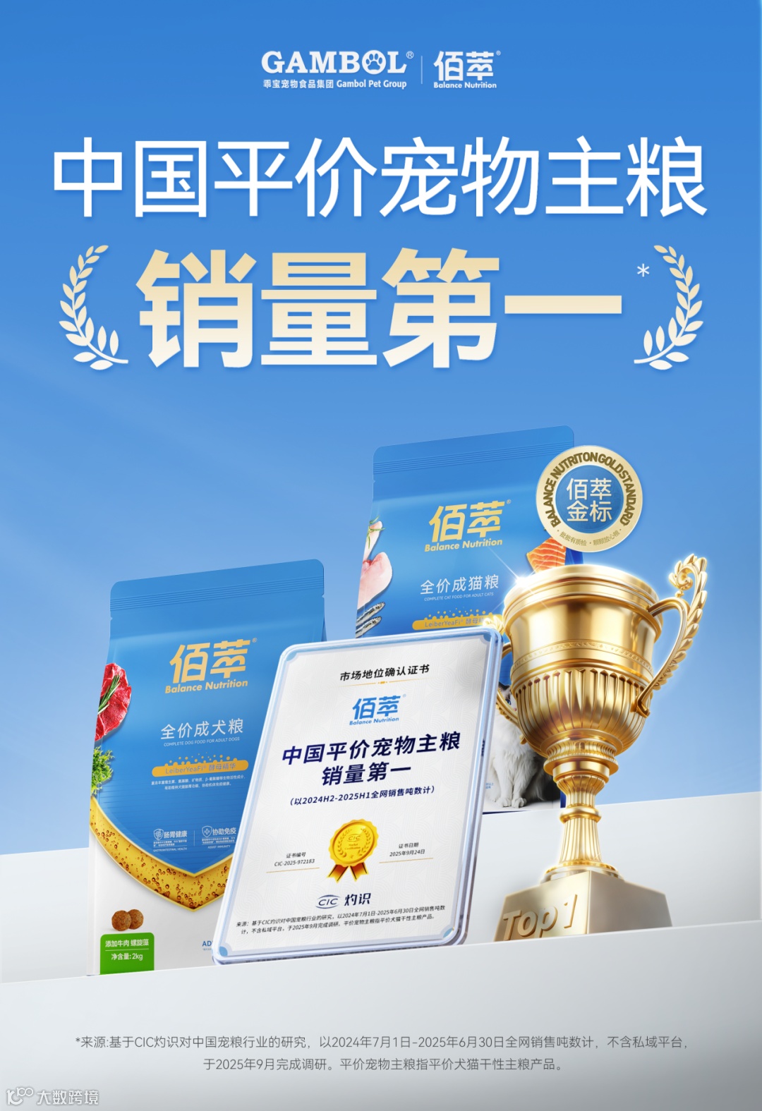 近日,宠经说发现,国产宠物食品品牌佰萃获得了CIC灼识颁发的市场认证书,被评为“中国平价宠物主粮销量第一”品牌。